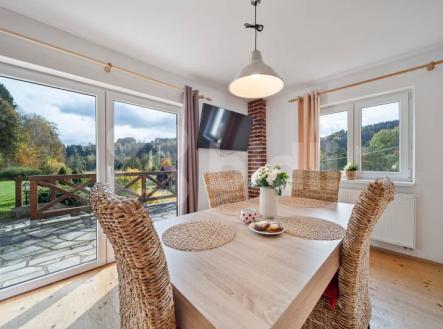 Nabízíme příležitost koupě rodinného domu s rozsáhlým pozemkem 6 437 m2; v malebné obci Dědov u Teplic. Dům se nachází na samotě, v srdci přírody v obklopení nádhernou krajinou. Blízkost oblíbených turistických cílů, jako jsou například Adršpašsko teplické skály, činí z tohoto místa ideální výchozí bod pro milovníky pěší turistiky. Z Dědova si také můžete udělat krásnou procházku do lesa do skalního města Ostaš. Dispozice domu: Přízemí: Vstupní chodba, koupelna se sprchovým koutem, kuchyně a obývací pokoj s krbem a přímým vstupem na terasu s výhledem do přírody. Podkroví: Prostorná ložnice s manželskou postelí a třemi jednolůžky - ideální pro rodinu nebo hosty. Vytápění je řešeno elektrokotlem, v přízemí také krbem. Pitná voda z vlastní studny, odpad řešen septikem. Dům disponuje také dvěma sklepy - jeden sklep slouží pro uskladnění dřeva a druhý nabízí s potenciál například pro vinný sklípek. Dům prošel před 10 lety rozsáhlou rekonstrukcí, včetně zateplení, nové střechy a vybudování kamenné příjezdové cesty a terénních úprav. Vedle domu se nachází pergola pro posezení u grilování s rodinou a přáteli. K domu se dostanete autem či pěšky po obecní komunikaci. Nedaleko se nachází vlaková zastávka s přímými spoji například do Teplic cesta vlakem trvá jen 3min, za 18min jízdy vlakem jste v Adršpachu. Obec Dědov se nachází pouhé 3 km od města Teplice nad Metují, které nabízí kompletní občanskou vybavenost včetně restaurací, obchodů a služeb. Tato nemovitost je ideálním útočištěm pro milovníky přírody a klidu. Díky rozlehlému pozemku a jedinečnému umístění na samotě představuje dům výjimečnou příležitost k rekreaci či provozování krátkodobých pronájmů. Z důvodu nedostupnosti PENB ke dni zpracování inzerce uvádíme v souladu s platným zákonem energetický štítek třídy G. Výměry jsou orientační. Pro více informací a domluvení prohlídky nás neváhejte kontaktovat!.