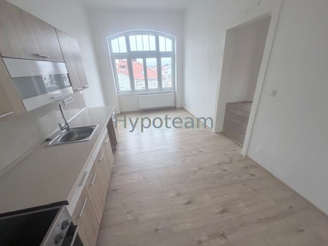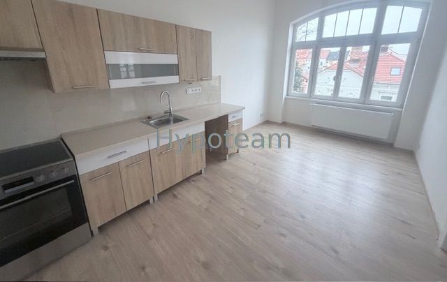 Nabízíme k pronájmu pěkný prostorný byt o velikosti 2+KK s balkonem, v Teplicích v ulici Jankovcova, byt o rozloze 55 m2 se nachází ve druhém patře v cihlovém domě, ze zadní strany domu 1. patro. Byt je prostorný, k dispozici je kuchyň s prostorem pro jídelní kout, obývací místnost je velice prostorná, vhodná pro obývací pokoj i ložnici. Byt je nově zrekonstruovaný, v obývacích místnostech se nacházejí nové plovoucí podlahy, v chodbě, v koupelně a na WC nová dlažba. V kuchyni se nachází kuchyňská linka s elektrickým sporákem. Bytové jádro je zděné, nově zrekonstruované s velmi prostorným sprchovým koutem, umyvadlem. Okna jsou plastová, velká, byt je tak světlý. Z obývacího pokoje se vstupuje na balkon, ze kterého je krásný výhled na hrad Doubravka. Topení v bytě je nové plynové, nové radiátory. Měsíční nájemné činí 12.000, Kč + 500, Kč osoba zálohy na vodu. Plyn a elektřinu si nájemník hradit bude sám. Vratná jistina ve výši dvou nájmů včetně vody + poplatek RK. Dům se nachází v centru města, veškerá občanská vybavenost je tak v blízkosti. Nedaleko se také nachází sportoviště a koupaliště, obchody, MHD. Byt je ihned k dispozici.