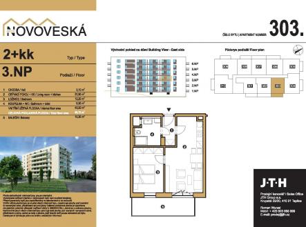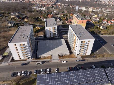Exluzivně nabízíme bytovou jednotku o velikosti 56m2 s balkonem. Tento byt se nachází ve 3.NP. Byt má jižní polohu a velkorysý balkon o velikosti 10m2, kteý potěší každého milovníka slunce. Doporučujeme prohlídku bytu s možností prohlídky již hotového vzorového bytu ! Nové bydlení v jedné z nejklidnějších částí Teplic. Lokalita se nachází na ulici Novoveská nedaleko Řetenického lesoparku i proslulého věžového vodojemu se snadnou a výbornou dostupností do centra města. Je známá jako oáza klidu a vyhledávané místo oddechu. Projekt obsahuje tři bytové domy, každý dům s 59 byty. Výrazně převažují byty s dispozicí 2+kk (velikosti od 45,80 m2 do 59,80 m2). Byty 3+kk mají velkost 62 m2 až 73 m2. V každém domě je pak jeden byt s dipozičním řešením 4+kk. Ze všech bytů je krásný výhled do okolí, ať už na Teplice, Krušné hory nebo široké okolí. Rezidenční projekt nabídne dostatečný počet parkovacích stání a to jak vnitřních, tak venkovních. K bytu je také možné přikoupit sklepní koji. Celý areál je oplocen a nabídne tak rezidentům bezpečí.