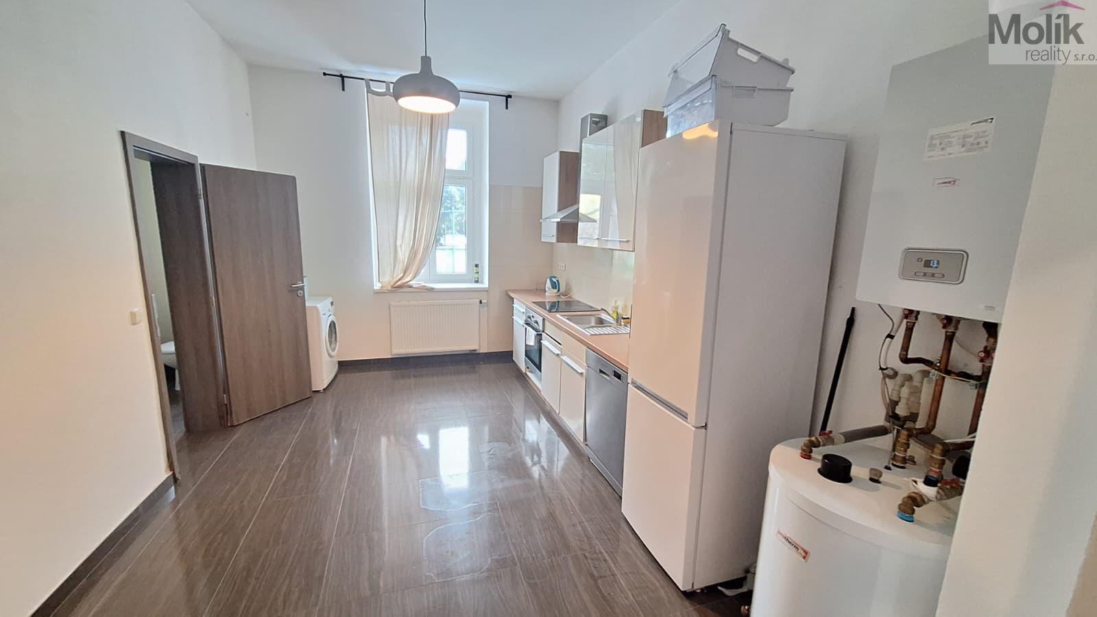Nabízíme k prodeji velice pěkný byt 3+1 v osobním vlastnictví o podlahové ploše 114 m2 v 1. NP. cihlového domu v Teplicích, ul. Zeyerovo náměstí. Bytová jednotka se nachází ve velice oblíbené lokalitě Šanov I. obklopené zelení a lázeňskými parky, je po rekonstrukci - kuchyňská linka se zabudovanými spotřebiči, plovoucí podlahy, keramická dlažba, nová dveřní křídla a obložky, dvě vyzděné koupelny obložené keramickými obklady se sprchovými kouty a toaletami. Bonusem k bytu je menší zahrádka za domem a sklepní koje. Cena je včetně vybavení bytu, menší opravy po nájemníkovi. Ohřev vody a tepla pomocí plynového kotle. Volný dle dohody. V okolí je veškerá občanská a dopravní vybavenost. Dům je osazen plastovými okny. S financováním Vám rádi pomůžeme. Volejte přiděleného makléře 7 dní v týdnu.