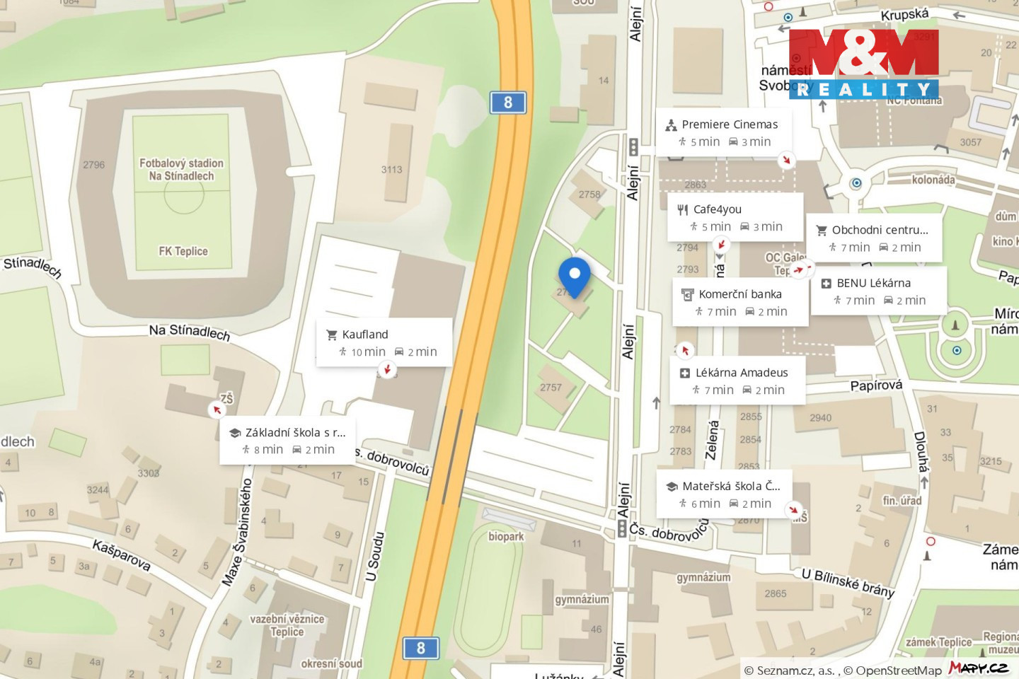 Hledáte dlouhodobý pronájem v centru, tak tato nabídka je dělaná přímo pro Vás. Byt o velikosti 1+1 o ploše 39 m2, který se nachází v 5. patře panelovém domu v obci Teplice, ul. Alejní. Na bytě proběhla zdařilá rekonstrukce. Nové rozvody vody a topení, plovoucí podlahy, kuchyňská linka na míru. Nájemné je bez záloh (voda, topení, elektřina). Majitel požaduje vratnou kauci ve výši dvou nájmů. Provize realitní kanceláři ve výši jednoho nájmu. Veškerá občanská vybavenost v těsné blízkosti domu. V případě dotazů, neváhejte kontaktovat makléře. Budeme se na Vás těšit. Byt je volný ihned a zůstává plně zařízený.