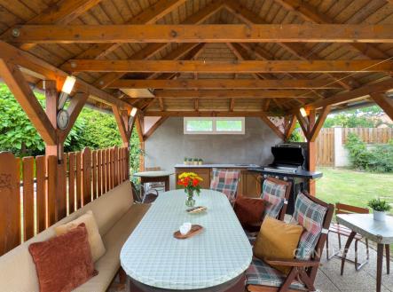 Dva rodinné domy s jedním číslem popisným – ideální pro vícegenerační bydlení nebo podnikání. Nabízíme k prodeji výjimečnou nemovitost o celkové výměře 1.812 m², která zahrnuje dva samostatné rodinné domy. Zastavěná plocha a nádvoří je 1.012 m². Každý z domů má samostatný vstup, což zajišťuje maximální soukromí. • Dům č. 1: dispozice 3+1 – vhodný pro menší rodinu, pronájem, podnikání nebo jako zázemí pro hosty Dispozice domu: Kuchyň 11 m² Obývací pokoj 14 m² Ložnice 14 m² Pokoj 9 m² Chodba 17 m² Koupelna 5,4 m² • Dům č. 2: dispozice 4+1, nová střecha z roku 2023, zateplení vatou, vytápění plynovým kotlem, ihned k nastěhování. Dispozice domů: Kuchyň 19 m² Obývací pokoj 15 m² Ložnice 12 m² Pokoj 13 m² Pokoj 14,5 Chodby 12 m² Koupelna s toaletou 11 m² Samostatná toaleta 1,3 m² • Tři garáže – pro parkování nebo uskladnění věcí • Dílny – vhodné pro řemeslníky, hobby nebo podnikání • Zastřešená pergola – ideální místo pro odpočinek a posezení • Předzahrádka a udržovaná zahrada – prostor pro relaxaci i pěstování • Parkování před domem, nebo v garáži. Nemovitost je napojena na obecní vodovod, kanalizaci, elektřinu i plyn. Tato nemovitost je ideální volbou pro vícegenerační bydlení, kombinaci bydlení a podnikání, nebo jako investice. Obec Těšetice se nachází severovýchodně od Znojma na hlavní silnici směrem na Moravský Krumlov. Obec je svou polohou dobře dostupná ze Znojma (za 10 minut) i z Brna (za 50 minut). Autobus linky 810 a 432 jezdí Těšeticemi denně. V obci je k dispozici mateřská škola, sportovní areál, knihovna, jídelna, obecní úřad, golfové hřiště a přehrada. Ostatní občanská vybavenost jako základní a mateřská škola, doktor, čerpací stanice, restaurace, stavební úřad, apod.. se nachází v sousedních Prosiměřicích, které jsou vzdáleny tři kilometry. Pro další informace o nemovitosti a termín prohlídky nás neváhejte kontaktovat.