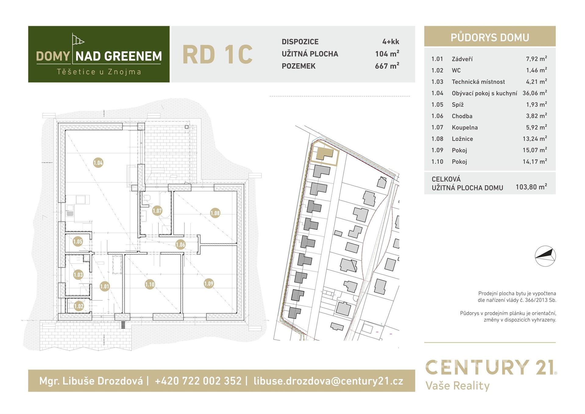 Do této novostavby domu o dispozici 4+kk a užitnou plochou 104 m2 se můžete stěhovat na podzim 2026. Pokud do Těšetic u Znojma přijedete, již nyní se můžete projít touto ulicí a podívat se na realizované a zkolaudované domy, kde se krásně bydlí. Jedná se skutečně o poslední dům nabídku samostatně stojícího domu na pozemku s výměrou 667 m2. Rodinný dům v rámci standardního vybavení je realizován s tepelným čerpadlem pro teplovodní podlahové topení a ohřevem užitkové vody. Dům je připraven pro instalaci fotovoltaické elektrárny po kolaudaci. Namontována jsou plastová okna s trojskly a trojitým těsněním. V obytných místnostech jsou laminátové podlahy EGGER a dlažba v ostatních místnostech. Koupelny jsou realizovány vč. dlažeb, obkladů a zařizovacích předmětů je možné stále vybírat. Jedná se o nízkoenergetický dům v kategorii PENB – velmi úsporná B. Financování a celý proces koupě domu s vámi řešíme individuálně. Existuje mnoho variant financování, které s vámi rádi probereme ještě před vaším rozhodnutím stačí se nám jen ozvat. S finančním poradcem Vám poradíme veškeré varianty a připravíme plán pro celý proces. Je pro Vás nejoptimálnější varianta prodat stávající byt či dům a pořídit si nový? I to umíme, ozvěte se nám a všechno podrobně probereme a správně načasujeme. Dům navazuje na stávající zástavu obce a samozřejmostí v místě je zeleň, chodníky, příjezdové komunikace, kompletní infrastruktura vč. veřejného osvětlení. Obec Těšetice se nachází severovýchodně od Znojma na hlavní silnici směrem na Moravský Krumlov. Obec je svou polohou dobře dostupná ze Znojma (za 10 minut) i z Brna (za 50 minut). Autobus linky 810 a 432 jezdí Těšeticemi denně. V obci je k dispozici mateřská škola, sportovní areál, knihovna, jídelna, obecní úřad, golfové hřiště a přehrada. Ostatní občanská vybavenost jako základní a mateřská škola, doktor, čerpací stanice, restaurace, stavební úřad, apod.. se nachází v sousedních Prosiměřicích, které jsou vzdáleny tři kilometry. Těším se, že mě kontaktujete a domluvíme si společnou schůzku.