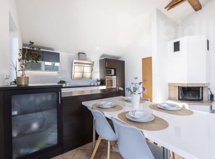 Toužíte po klidném bydlení nedaleko Prahy? Láká vás otevřený prostor a komfort prostorného obývacího pokoje s výškou stropu přes 4 metry? Pak by právě tento dům mohl být to pravé pro vás! Tento rodinný dům stojí na pozemku o velikosti 743 m² a nabízí skvěle navržený prostor pro pohodlný rodinný život. Se zastavěnou plochou 154 m² poskytuje dostatek soukromí a praktičnosti, včetně užitečného přístřešku o rozloze 11 m². Srdcem domu je velkorysý obývací pokoj s kuchyňským koutem o rozloze takřka 50 m². Otevřený strop, který sahá až do výšky 4,2 metru, dodává prostoru jedinečnou atmosféru. Praktická spíž, dostatek denního světla a přímý vstup na terasu a zahradu dělají z tohoto místa ideální prostředí pro odpočinek i setkání s rodinou. Děti budou mít dostatek prostoru ve dvou pokojích o velikosti 14 m² a 16 m², které nabídnou pohodlí jak pro hraní, tak pro učení. Hlavní ložnice o rozloze necelých 17 m² poskytne dokonalé zázemí pro rodiče. Koupelna o výměře bezmála 8 m² je vybavená vanou, sprchovým koutem, toaletou i bidetem. Samostatná toaleta je samozřejmostí, stejně jako praktická prádelna, která usnadní každodenní chod domácnosti. Před domem pohodlně zaparkujete až 6 aut, což oceníte nejen při rodinných oslavách nebo příjemných večerech u grilu s přáteli. A co lokalita? Tišice jsou skvělou volbou pro rodiny hledající klidné a pohodlné bydlení. Výborná občanskou vybavenost zajišťuje školu, školku, obchody, zdravotní středisko, lékárnu i poštu v docházkové vzdálenosti. Pokud budete potřebovat větší nákupy nebo další služby, nedaleké město Kostelec nad Labem nebo Neratovice nabídnou vše, co si můžete přát. Skvělá dostupnost do Prahy je dalším bonusem - vlakem jste v centru za pouhých 40 minut. Pokud hledáte moderní a prostorné bydlení v příjemném a klidném prostředí s výbornou dostupností do hlavního města, tento dům rozhodně stojí za vaši pozornost. Rád vás provedu osobně!.