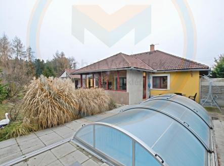 Prodej rodinného domu – bungalov 4+kk, Tišice – Chrást, pozemek 1 244 m² Zprostředkuji prodej zděného rodinného domu typu bungalov 4+kk o celkové užitné ploše 154,84 m², s přímým vstupem na krytou terasu (20 m²), bazénem (18 m³), zděnou garáží, krytým parkovacím stáním, skladovými přístřešky a skleníkem, vše na vlastním pozemku o výměře 1 244 m². Nemovitost se nachází v obci Chrást v klidné rezidenční části obce s převážně rodinnou zástavbou. Rodinný dům byl kolaudován v roce 2008, je postaven ze zdiva Ytong, má betonové, izolované základy a valbovou střechu s betonovou taškou. Okna jsou plastová, dvojskla se žaluziemi, vstupní i interiérové dveře plastové. Podlahy jsou kombinací plovoucích podlah a keramické dlažby. Vytápění domu je etážové, zajištěné elektrickým kotlem, v obytném prostoru je navíc funkční krb. V části domu je podlahové vytápění. Dominantou domu je prostorný obytný prostor s kuchyňským koutem o výměře 50,45 m², propojený s terasou. Součástí kuchyně je samostatná místnost využívaná jako spíž, v této části domu je instalováno podlahové vytápění. Další výraznou předností domu je koupelna o výměře 9,05 m², která nabízí vanou, sprchový kout, bidet, WC a dvojité umyvadlo, vše sladěné v jednotném obkladu. Dům disponuje třemi samostatnými pokoji o výměrách 6,35 m², 13,10 m² a 16 m², které lze využít dle potřeb (ložnice, dětské pokoje, pracovna). K dispozici je také samostatná technická místnost (5,15 m²) s elektrickým kotlem, bojlerem a prostorem pro pračku. Spodní část domu a vestavěné podkroví propojuje dřevěné schodiště. Součástí stavby je světlý otevřený prostor podkroví, který nabízí další variabilní využití a vestavěné úložné prostory. Pozemek je oplocený a vjezd zajištují na dálku ovládaná vrata. Na pozemku se nachází samostatně stojící zděná garáž se sekčními vraty. Z jedné strany garáže je vybudováno kryté parkovací stání, z druhé strany menší otevřené skladové přístřešky, vhodné pro uložení zahradní techniky, dřeva nebo vybavení. Součástí pozemku je také skleník. Dům je napojen na veřejný vodovod, elektřinu a kanalizaci. Obec Tišice – Chrást se nachází přibližně 25 km severovýchodně od Prahy, v blízkosti řeky Labe a okolní přírody. Lokalita je vhodná pro klidné rodinné bydlení s dobrou dostupností do Prahy i okolních měst. V obci a jejích částech se nachází mateřská škola, dětská hřiště, sportoviště a základní služby. Další občanská vybavenost, včetně základní školy, obchodů, lékařské péče a dalších služeb, je dostupná v blízkých Tišících, Neratovicích a Mělníku. Obec má vlakové spojení v rámci integrované dopravy, dále autobusové linky do okolních obcí a měst. Autem je zajištěna dobrá dostupnost směrem na Prahu i Mělník. Prohlídky nemovitosti jsou možné po předchozí domluvě. V případě zájmu je možné zajistit financování koupě nemovitosti, včetně hypotečního úvěru a individuální konzultace.