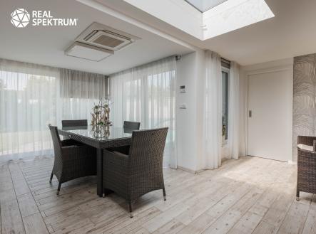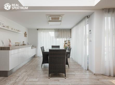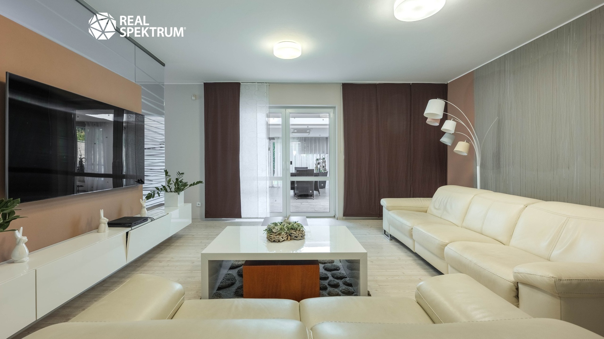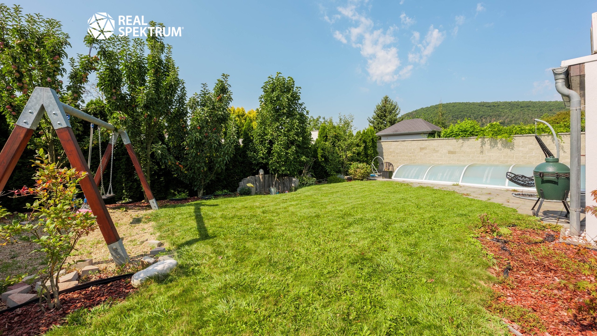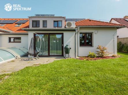 Nabízíme k prodeji výjimečný rodinný dům, který splňuje všechny požadavky moderní doby a poskytne svým obyvatelům maximální komfort. V přízemí vás uvítá prostorný obývací pokoj propojený s elegantní zimní zahradou, která se stane ideálním místem pro odpočinek po celý rok. Součástí dispozice je také pracovna pro klidnou a efektivní práci z domova. V patře naleznete tři velké ložnice a praktickou šatnu s vestavěnými skříněmi. Dům se prodává včetně nadstandardního vybavení, kdy interiér je zařízen v luxusním stylu s důrazem na čisté linie a prosvětlené prostory, doplněné o krb a klimatizaci. K domu náleží dvě garáže s možností parkovat 3 auta, venkovní bazén se zastřešením pro prodloužené využití až do podzimu a pečlivě udržovaná zahrada se závlahovým systémem. O energetickou soběstačnost se stará fotovoltaická elektrárna, která pokrývá provoz domu i možnost nabíjení elektromobilu. Dům se nachází v klidné rezidenční části na okraji města, s výbornou dostupností občanské vybavenosti i dopravy. Spojení moderních technologií, elegantního designu a kvalitního provedení dělá z této nabídky jedinečnou příležitost k pořízení ideálního rodinného bydlení. Pozemek celkem:520 m² Užitná plocha: 279 m² Dispozice: 1.NP: předsíň (2,8 m²), obývací pokoj (45,8 m²), kuchyně (14,9 m²), pokoj (15,4 m²), chodba (2,8 m²), koupelna (10,2 m²), WC (1,3 m²), zimní zahrada (22,3 m²), sklad (7,3 m²), garáž (34,3 m²), garáž (21,4 m²) 2.NP: chodba (12,3 m²), pokoj (22,8 m²), pokoj (20,2 m²), pokoj (18,7 m²), šatna (14,0 m²), chodba (2,3 m²), koupelna (8,5 m²), WC (1,5 m²) Vybavenost: el. 230/400 V, veřejný vodovod, kanalizace, plyn (před domem).