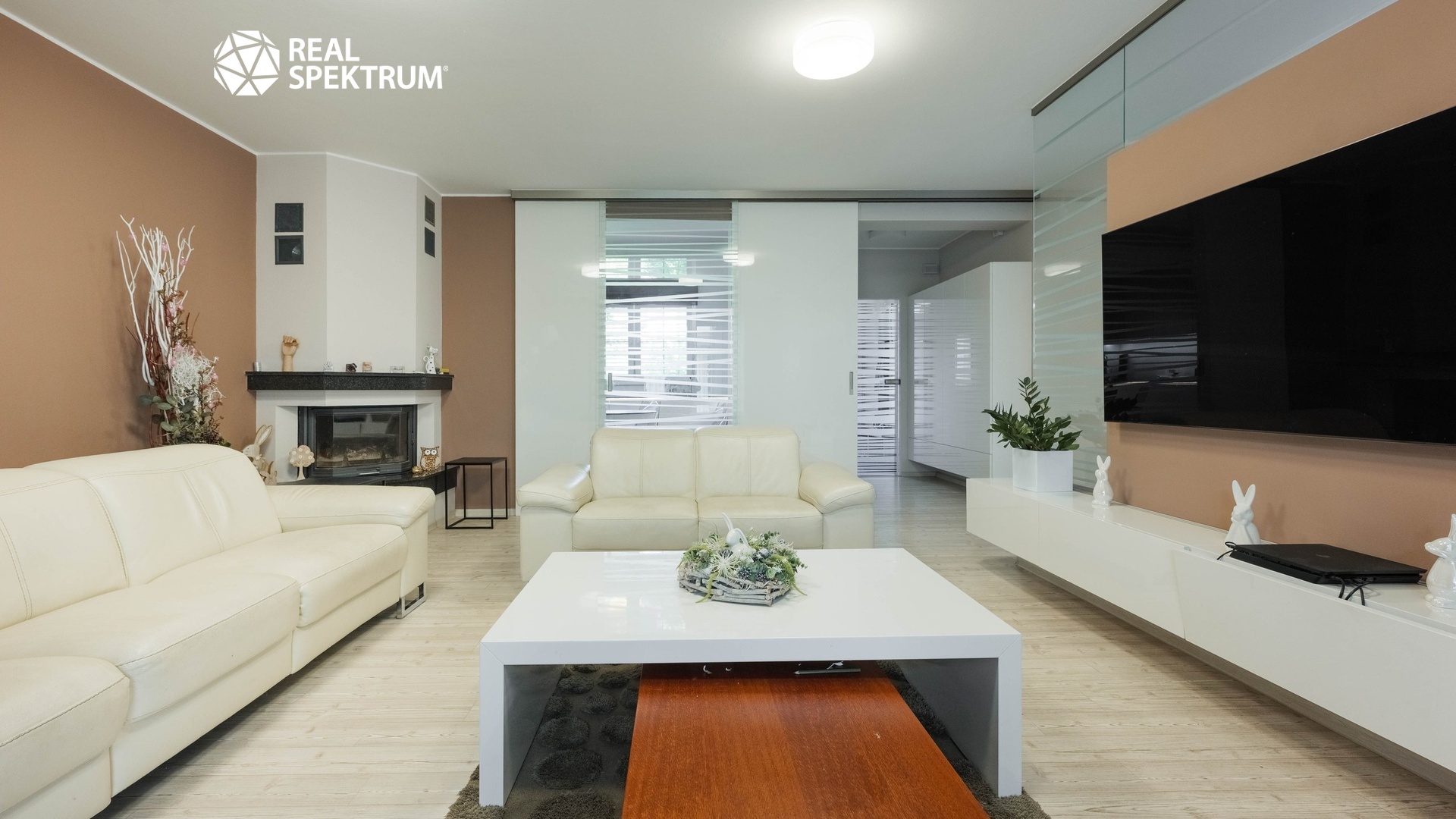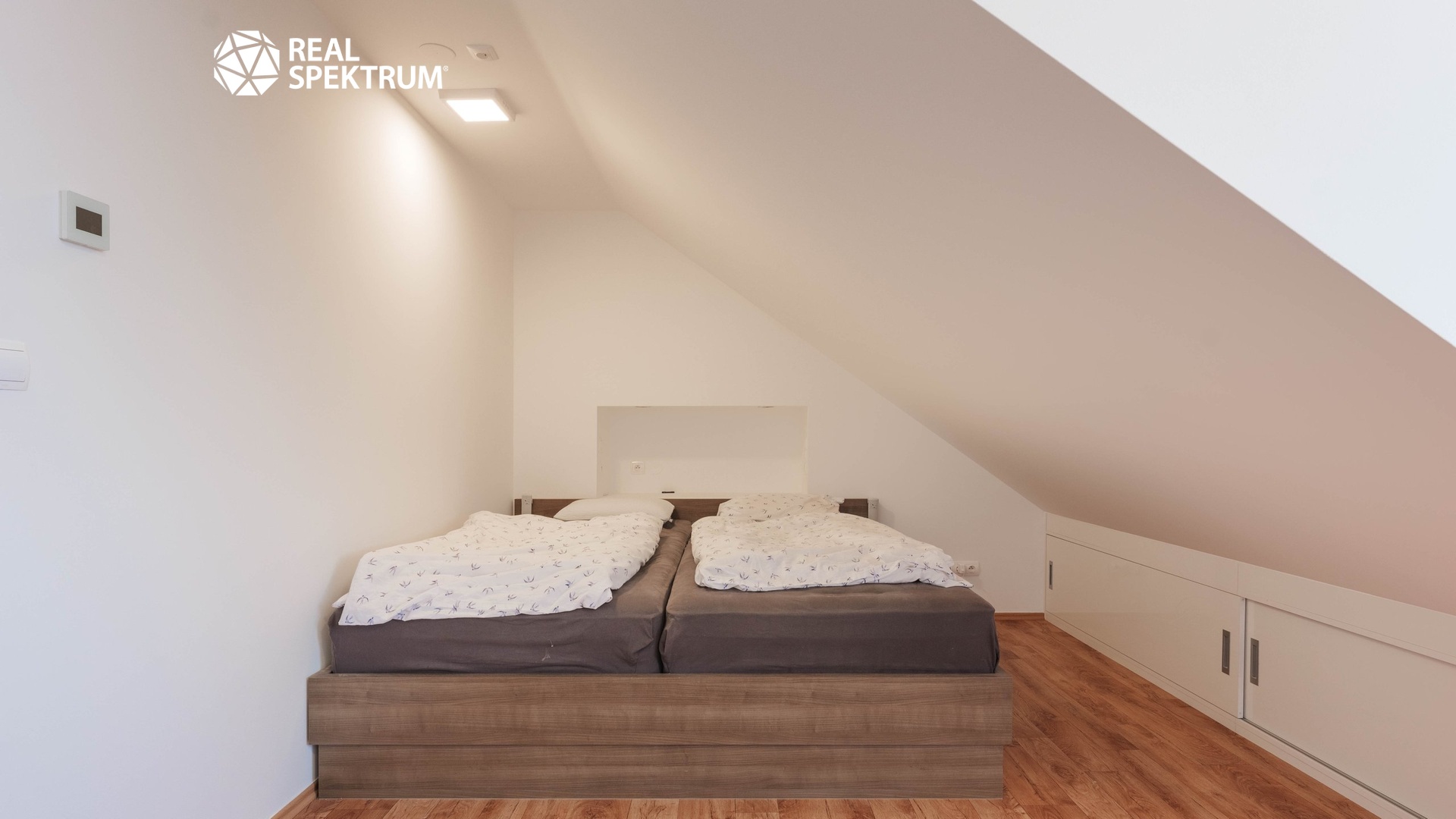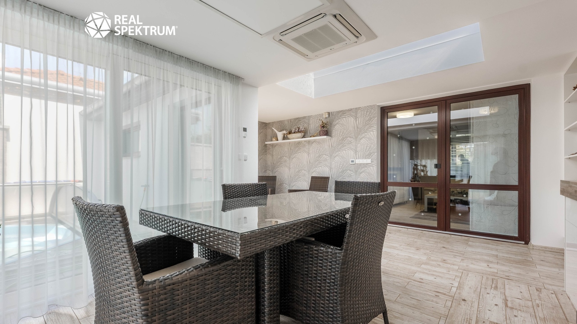 Nabízíme k prodeji výjimečný rodinný dům, který splňuje všechny požadavky moderní doby a poskytne svým obyvatelům maximální komfort. V přízemí vás uvítá prostorný obývací pokoj propojený s elegantní zimní zahradou, která se stane ideálním místem pro odpočinek po celý rok. Součástí dispozice je také pracovna pro klidnou a efektivní práci z domova. V patře naleznete tři velké ložnice a praktickou šatnu s vestavěnými skříněmi. Dům se prodává včetně nadstandardního vybavení, kdy interiér je zařízen v luxusním stylu s důrazem na čisté linie a prosvětlené prostory, doplněné o krb a klimatizaci. K domu náleží dvě garáže s možností parkovat 3 auta, venkovní bazén se zastřešením pro prodloužené využití až do podzimu a pečlivě udržovaná zahrada se závlahovým systémem. O energetickou soběstačnost se stará fotovoltaická elektrárna, která pokrývá provoz domu i možnost nabíjení elektromobilu. Dům se nachází v klidné rezidenční části na okraji města, s výbornou dostupností občanské vybavenosti i dopravy. Spojení moderních technologií, elegantního designu a kvalitního provedení dělá z této nabídky jedinečnou příležitost k pořízení ideálního rodinného bydlení. Pozemek celkem:520 m² Užitná plocha: 279 m² Dispozice: 1.NP: předsíň (2,8 m²), obývací pokoj (45,8 m²), kuchyně (14,9 m²), pokoj (15,4 m²), chodba (2,8 m²), koupelna (10,2 m²), WC (1,3 m²), zimní zahrada (22,3 m²), sklad (7,3 m²), garáž (34,3 m²), garáž (21,4 m²) 2.NP: chodba (12,3 m²), pokoj (22,8 m²), pokoj (20,2 m²), pokoj (18,7 m²), šatna (14,0 m²), chodba (2,3 m²), koupelna (8,5 m²), WC (1,5 m²) Vybavenost: el. 230/400 V, veřejný vodovod, kanalizace, plyn (před domem).