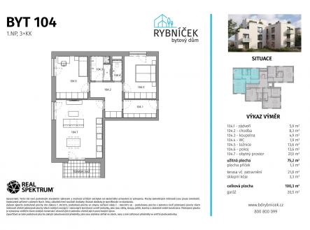 Ve výhradním zastoupení investora vám nabízíme moderní byt 3+kk s velkorysou terasou se zatravněním a vlastní garáží, který je součástí zcela nového čtyřpodlažního bytového domu v projektu Bytový dům Rybníček. K bytu dále náleží sklepní kóje, která poskytuje dostatek úložného prostoru. Tento prostorný byt vyniká nadstandardním vybavením a moderním designem, který kombinuje vzdušný interiér s důrazem na praktičnost. Celý projekt je pečlivě zasazen do okolí a nabízí klidné prostředí v harmonii se zelení, přitom však zůstává ideálně propojen s městským životem. Perfektní lokalita: Tišnov – klid, příroda a skvělá dopravní dostupnost Bytový dům Rybníček se nachází ve vyhledávaném městě Tišnov, přímo pod malebným vrchem Klucaniny. Tato lokalita je ideální pro milovníky přírody, kteří si přitom chtějí zachovat pohodlný přístup k městské infrastruktuře. Vlakové a autobusové spojení do Brna je rychlé a pohodlné, díky čemuž je Tišnov atraktivní volbou pro každodenní dojíždění za prací, studiem nebo zábavou. Samotný Tišnov nabízí kompletní občanskou vybavenost – mateřské a základní školy, vyhlášené gymnázium, střední škola, obchody, lékařskou péči, restaurace a kulturní i sportovní vyžití. Na své si přijdou také milovníci turistiky a cyklistiky, kteří ocení širokou síť stezek v okolí. Bydlení, které spojuje příjemné s praktickým Projekt Bytový dům Rybníček je ideálním řešením pro ty, kteří hledají moderní bydlení na klidném místě s vynikající dostupností do města. Kombinace kvalitního provedení, promyšleného designu a atraktivní lokality dělá z tohoto bytu jedinečnou příležitost pro vlastní bydlení nebo jako investici. Pro více informací nás neváhejte kontaktovat a domluvte si osobní schůzku. Těšíme se na vás! Dispozice: zádveří (5,9 m²), chodba (8,3 m²), pokoj s kuchyňským koutem (27,0 m²), pokoj (13,6 m²), pokoj (13,6 m²), koupelna (4,9 m²), WC (1,9 m²), terasa vč. zatravnění (21,8 m²), sklepní kóje (3,3 m²), garáž (20,5 m²)