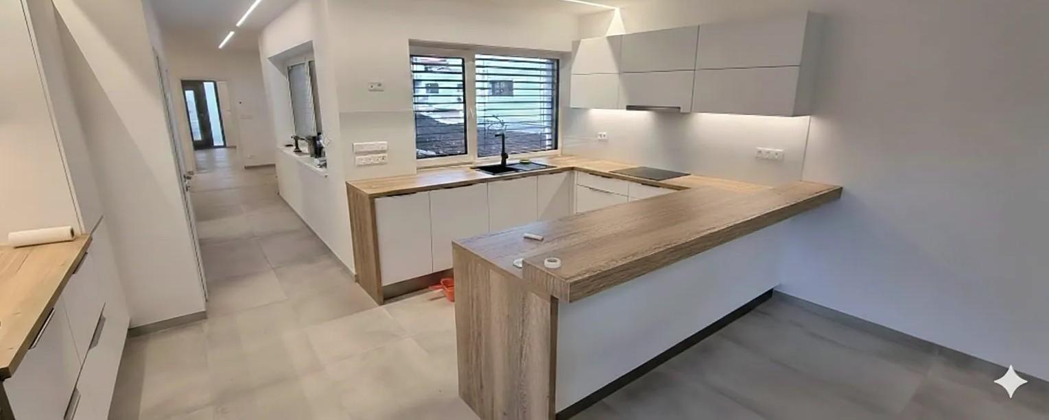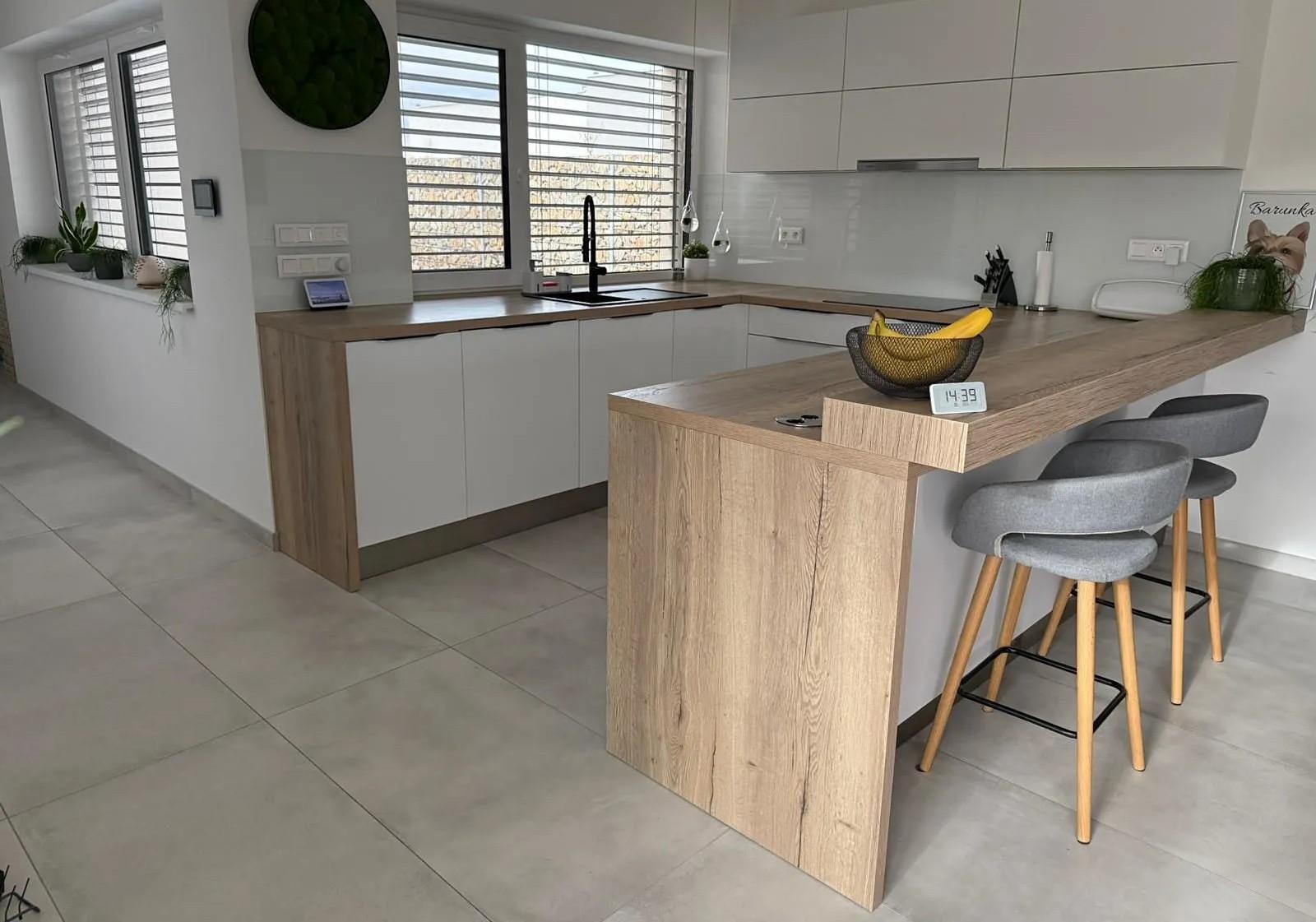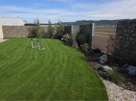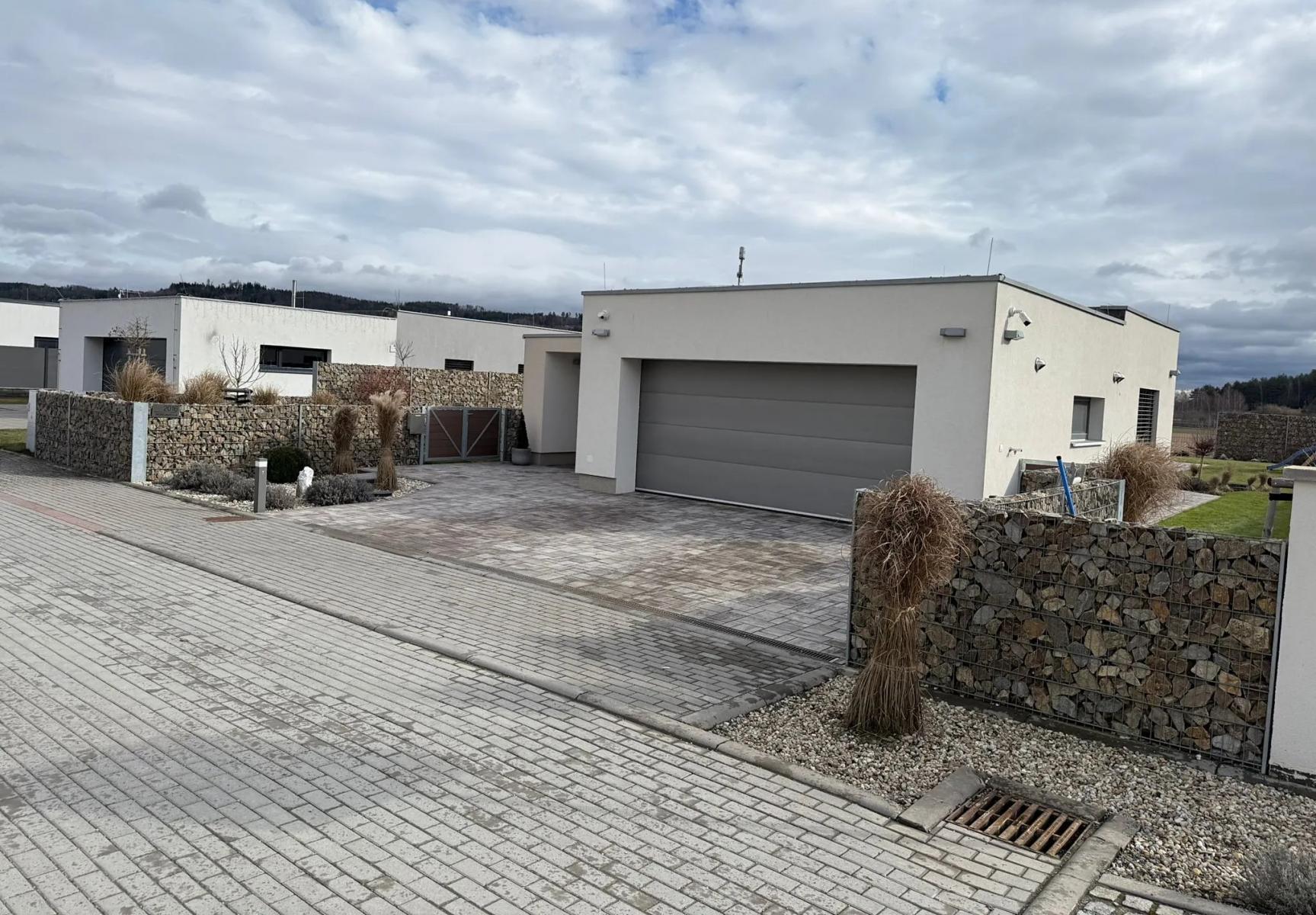 Nabízíme k prodeji novostavbu rodinného domu o velikosti 4+kk, v obci Tišnov, ulice Sigmundova, samostatně stojící, přízemní, Rodinný dům zkolaudovaný v r. 2022 je zděný, jednopodlažní s rovnou střechou, garáží pro 2 osobní automobily 36 m a venkovním parkovacím stáním pro další 2 auta. Zastavěná plocha 209 m, podlahová plocha 173 m. Dům je připojený na elektřinu (tři fáze), obecní vodovod (s retenční nádrží 5 m), obecní kanalizaci (dešťová i splašková). Vytápění domu prostřednictvím elektrického podlahového topení s chytrými termostaty v každé místnosti. Klimatizace je zavedena do každého pokoje, regulovatelné samostatně. Na střeše domu je zbudovaná fotovoltaika s výkonem 15 kWp a 4 bateriemi po 19 kW, které jsou celodenně nabíjeny. Podlahové krytiny jsou velkoformátové dlaždice ve všech místnostech, plastová okna v trojskle, vchodové dveře z hliníku. Na všech oknech jsou umístěny předokenní hliníkové žaluzie. Dům má dispozici 4+kk s terasou umístěnou na jih. Pokoj s kuchyňskou linkou v ceně 600.000,- Kč včetně veškerých vestavných spotřebičů má výstup na terasu o výměře 35 m. Z ložnice je vstup do šatny a koupelny s umyvadlem, sprchovým koutem, WC a bidetem. Z chodby je vstup do pracovny, dětského pokoje, druhé koupelny s umyvadlem, vanou a WC, a do technické místnosti s pračkou, sušička a bojlerem na ohřev vody. Vstupní předsíň ústí do garáže pro dva osobní automobily. Zahrada o výměře 565 m je bez dalších staveb, osázena travou, okrasnými keři a dřevinami, zakrslými stromky a sezónními květinami, je zde přívod elektřiny pro budoucí pergolu a zahradní domek. Na zahradě je vybudovaný zavlažovací systém, dětské pískoviště a průlezka. Pozemek je kompletně oplocený, plot je umístěný na vlastním pozemku, nikoliv na hranici se sousedním pozemkem. Plot je osazen dvojitou bránou pro vjezd a brankou pro pěší. Gabionový plot je v přední části pozemku vysoký 1,2 m, v zadní části dosahuje výšky 2 m. Dům je připravený na připojení optické sítě, čeká se na dobudování sítě pro zbytek Tišnova. Připojení na internet se prozatím řeší vzduchem (wifi). Dům je nepodsklepený, postaven z YTONGU, zateplení domu 20 cm polystyren, fasáda světle hnědá v kombinaci s bílou, celkový půdorys 12,6 m x 27 m. Příjezd k domu je po obecní komunikaci. V domě je instalován kamerový systém s 8 kamerami, je možné nainstalovat kompletní zabezpečovací systém v domě včetně garáže. Pozemek má délku 40 m, šířku 20 m, zastavěná plocha domu včetně zpevněných ploch je 290 m2. Dům je po dohodě možné ponechat včetně veškerého vybavení. Uvolnění dle dohody. Energetická třída B.