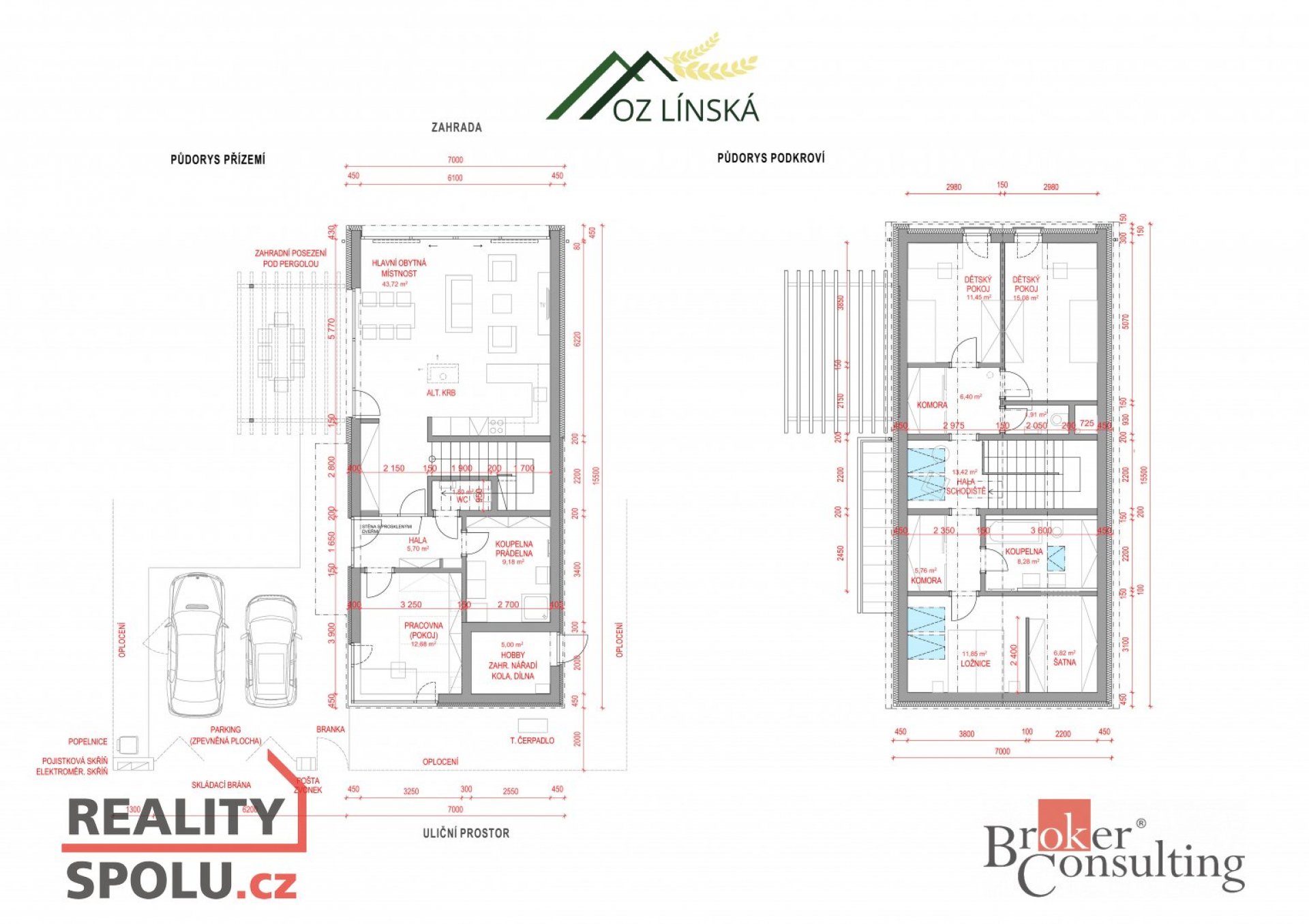 Exkluzivně nabízíme k prodeji rodinný dům č. 2.1 v projektu Obytná zóna Línská v obci Tlučná u Plzně. Moderní dům s dispozicí 5+kk disponuje užitnou plochou 161 m² a pozemkem o velikosti 503 m². Dispozice domu je navržena s důrazem na pohodlí a praktičnost: v přízemí najdete prostorný obývací pokoj s kuchyňským koutem a jídelnou, pracovnu, technickou místnost a hobby místnost se samostatným vstupem ze zahrady. V podkroví jsou pak dvě dětské ložnice, ložnice se šatnou, koupelna a úložné prostory. Termín dokončení domu a kolaudace je červen 2026. Přehled standardů, způsob financování a další informace o projektu najdete na webových stránkách ozlinska. Tlučná je klidná obec s kompletní občanskou vybaveností – lékaři, škola i školka, pošta, lékárna i další služby. Výborná dostupnost do Plzně dělá z této lokality skvělé místo pro rodinný život. Nový unikátní projekt Obytná zóna Línská bude realizován v jižní části obce Tlučná v Línské ulici. Zde bude vybudována zcela nová lokalita včetně přístupových cest, kde bude k dispozici celkem 11 rodinných domů. Svým architektonickým řešením a luxusní lokalitou je projekt atraktivní především pro rodiny s dětmi či pro lidi, kteří ocení klidné prostředí a soukromí. Pro více informací či domluvení prohlídky nás neváhejte kontaktovat. S financováním rádi pomůžeme.