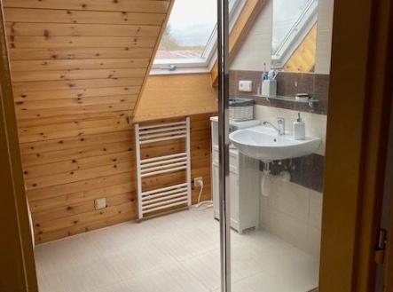 Ve výhradním zastoupení majitele nabízíme k prodeji mezonet v rodinném domě se samostatným vchodem a zahradou v obci Komárov u Toužimi. Byt je dispozičně řešený jako 3+1, v přízemí je předsíň, vybavená nová kuchyň, koupelna, WC, pokoj, v 1. patře jsou dva samostatné pokoje a druhá koupelna s WC. Podlahy jsou plovoucí, lamino a dlažba, k bytu náleží sklep cca. 15m2. Byt je po rekonstrukci, všechny rozvody jsou nové, el. voda, podlahy, okna atp. Obec Komárov se nachází 6 km od města Toužim. Výměra bytu je 99,8 m2 + sklep cca. 15 m2, předmětem prodeje je podíl 1/2 na pozemku před domem, kde je možné parkování.
