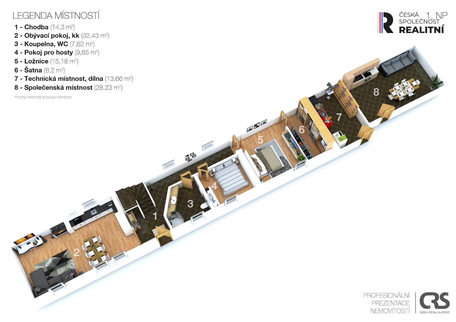 Prostorný dům 212m2 s velkou garáží a pergolou na karavan! Hledáte klidné bydlení s kouzlem jihočeské přírody a přitom na dosah historického centra Třeboně? Tři kilometry od tohoto lázeňského města s unikátní přírodou plnou rybníku a lesů, leží obec Břilice. Na jejím okraji nabízíme ke koupi, vkusně vybavený rodinný dům 5+1 o podlahové ploše bytu 212 m2, po kompletní rekonstrukci, vhodný pro klienty, kteří hledají něco výjimečného! Proč je nemovitost zajímavá? + Dům disponuje zabezpečovacím systémem Jablotron - profesionální ochrana celého objektu + Celá hlavní část pozemku je poctivě vydlážděná + Pergola 8 m pro karavan! - výborné zázemí, včetně elektřiny + Další pergola na posezení pro relax a grilování + Velká garáž 42 m2 pro dvě auta a k tomu ještě pochozí půda+dílna na uskladnění zahradní techniky + Technická místnost na uskladnění osobních věcí + Přístup do objektu a vjezd je z obou stran! + Mnoho místa pro velkou rodinu + Přízemí 129 m2 - obytná část (plovoucí podlahy, koupelna se sprchovým koutem, dlažba, nová okna a plně vybavená kuchyňská linka) + Podkroví 83 m2, - vinylové podlahy, toaleta, spousta místa na zázemí + Krbová kamna - možno topit dřevem v přízemí domu + elektrický kotel propojen s bojlerem, vytápění celého domu + velký bojler v kombinaci se solárními panely k přitápění a také k ohřevu vody + Plyn je přiveden k domu + Vlastní studna pro užitkovou vodu + Vodovodní řád samozřejmostí + Zahrada s ovocnými stromy a keři, jabloň, angrešt, rybíz, líska + Objekt je připravený k okamžitému užívání bez dalších investic + Výborná dostupnost do centra Třeboně + Procházky, rybaření, cykloturistika Aktualizace energetického štítku se zpracovává Srdečně vás zveme na prohlídky, které budou nejen v týdnu, ale také o víkendech!
