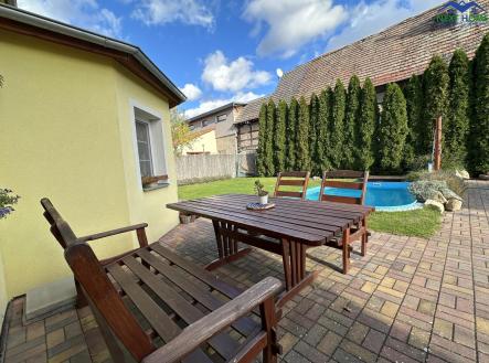 Prodej, rodinný dům 4+kk, zahrada, bazén, kůlna, celková plocha 559 m2, Trnovany, okr. Litoměřice.
