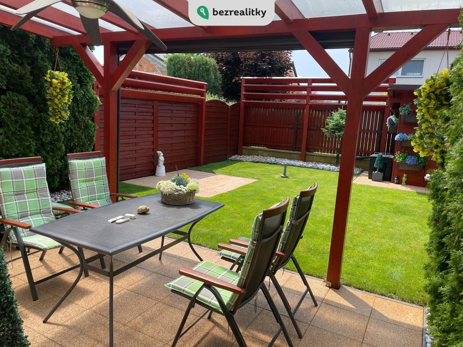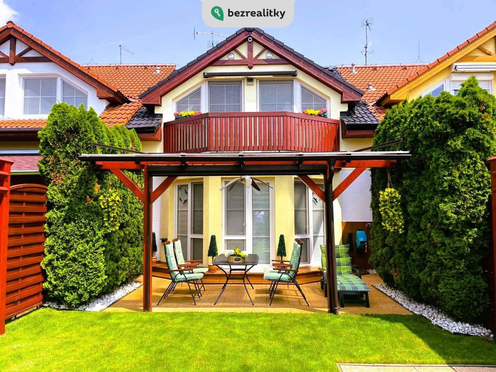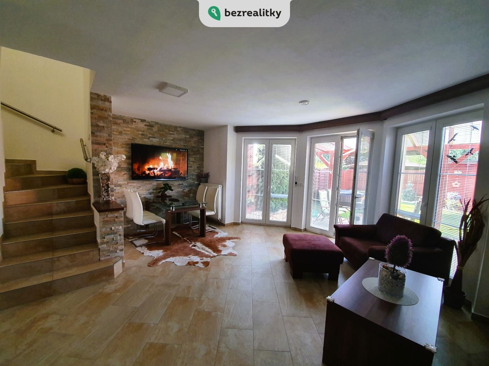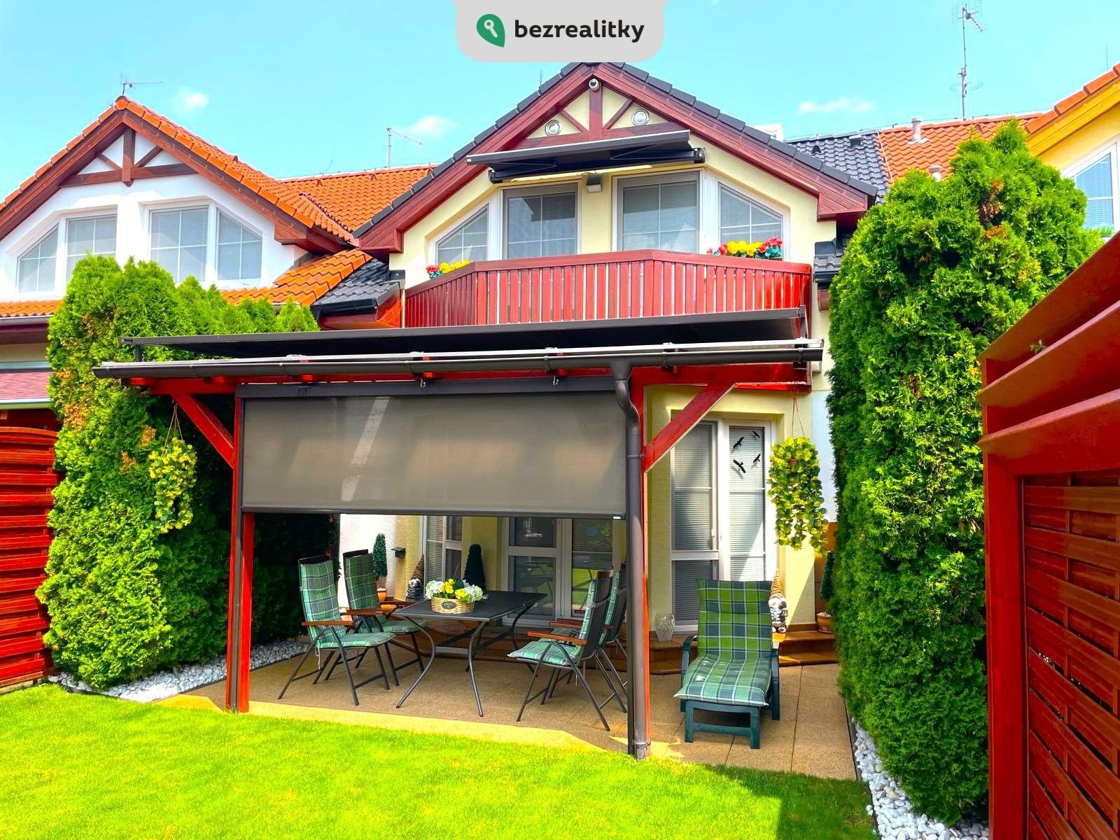 Prodej nadstandardního rodinného domu 4+1 v Troubsku – bez provize Prodáme modernizovaný a výborně udržovaný dům 4+1 v atraktivní a klidné lokalitě Troubsko, Brno-venkov. Nemovitost se nachází na konci neprůjezdné, slepé ulice v rezidenční čtvrti Za Kostelem. Jižní orientace zajišťuje dostatek světla a soukromí. Výhody lokality: Kompletní občanská vybavenost – škola, školka, potraviny, restaurace, pošta, bankomat, MHD i vlak. Skvělá dostupnost do Brna: Bosonohy a Popůvky 1 min., Bohunice a Campus do 5 min. Napojení na D1 a městský okruh. Dispozice a vybavení: Dům je vybaven nábytkem na míru, kuchyňskou linkou s vestavěnými spotřebiči Whirlpool, rekuperací v každé místnosti, klimatizací Sinclair, alarmem Jablotron a kamerovým systémem Hikvision. V přízemí: vstupní hala, koupelna se sprchou, samostatné WC, obývací pokoj s jídelnou a kuchyní, komora, vstup do garáže (garážová vrata Hörmann). V patře: ložnice s balkonem a elektrickou markýzou, prostorná koupelna s rohovou vanou, dětský pokoj, pracovna, komora a vestavěný trezor. Půda s pochozí podlahou a rekuperací. Zahrada: terasa, krytá zahradní pergolou z masivu a udržovanou zahradou, poskytující i v řadové zástavbě dostatek soukromí a klidu. Jižní strana s nadbytkem letního slunce má kompletní stínící techniku (nad pergolou je elektricky ovládaná markýza 6x4m a screenová roleta pro dostatečné stínění při slunečných dnech). Plně vybavený zahradní domek pro údržbu zahrady, rozvod odpadu, vody a elekro po zahradě,ohniště s krbem. Dům je ve výborném technickém stavu, po pečlivém majiteli, pravidelně servisován (plyn, kotel, elektro, kamery, stínění, sanita, alarm). Prodává se včetně kompletního vybavení. Stačí se nastěhovat – bez dalších investic. Prodej přímo od majitele, cena je konečná. Neplatíte provizi. RK prosíme nekontaktovat – pouze s konkrétním zájemcem. Tato nemovitost je určena výhradně přímým zájemcům o koupi. Na inzerát můžete také reagovat přímo na webu Bezrealitky: https://www.bezrealitky.cz/nemovitosti-byty-domy/912062-nabidka-prodej-domu-hodakova-troubsko
