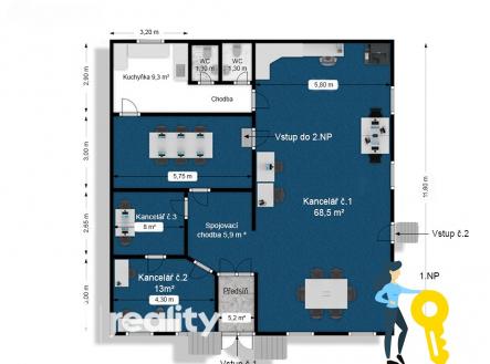Nabízíme k dlouhodobému pronájmu kancelářské a skladovací prostory v lokalitě Troubsko – Veselka, pouhých 5 km od dálničního sjezdu Rosice (D1, 182. km) a v těsné blízkosti silnice I/602. Prostory tvoří kanceláře s kuchyňkou, dvě koupelny, dvě samostatné toalety a variabilní dispoziční řešení díky sádrokartonovým příčkám, které umožňují přizpůsobení uspořádání dle potřeb nájemce. Samozřejmostí je připojení k internetu a zabezpečovací systém. Objekt má tři podlaží, z nichž každé nabízí přibližně 150 m² užitné plochy, tedy celkem cca 450 m² vnitřních prostor. K dispozici je také cca 300 m² venkovních skladovacích ploch v uzavřeném dvoře. Areál je zcela oplocený a nabízí parkování pro přibližně 10 vozidel na zpevněné ploše o velikosti cca 300 m² před objektem. Celkově je tak k dispozici zhruba 600 m² venkovních ploch, které jsou zahrnuty v ceně nájmu. Prostory se pronajímají částečně vybavené, a to včetně kuchyňské linky, sociálního zázemí a technologií pro ohřev vody a vytápění. Pro více informací nebo sjednání prohlídky kontaktujte makléře.
