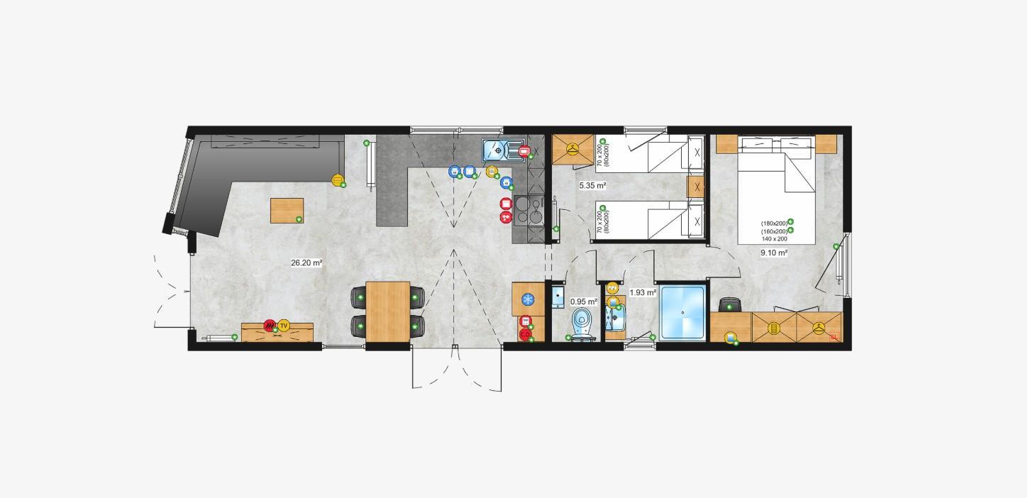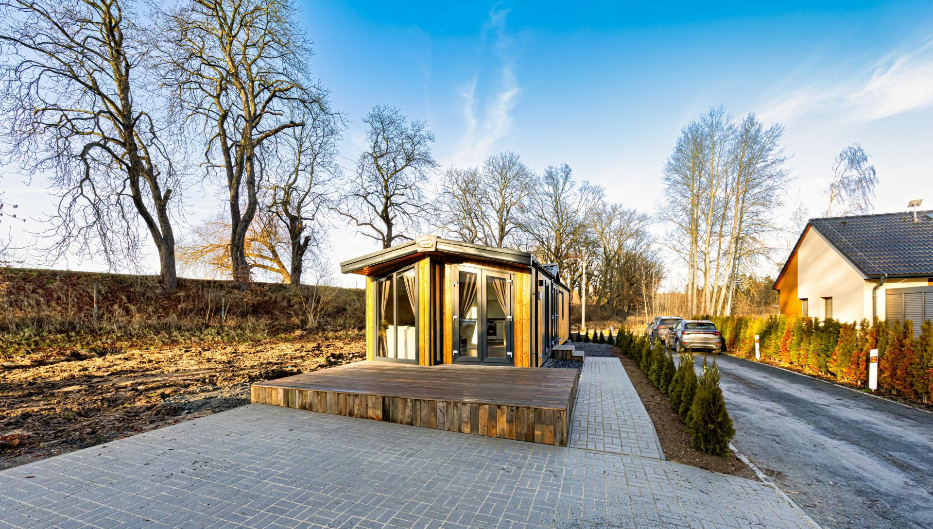 3+kk s terasou, pronájem plně vybaveného modulárního domu se zahradou 244 m2, obec Třtice.