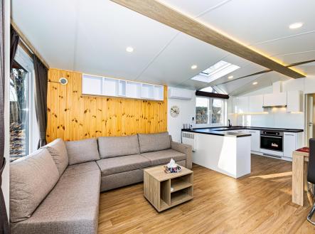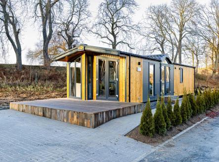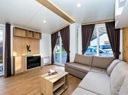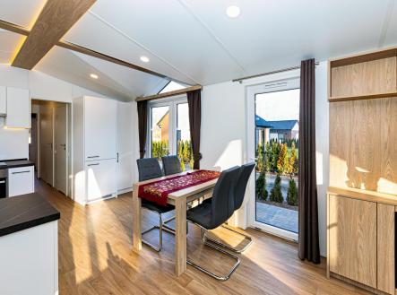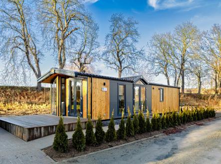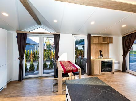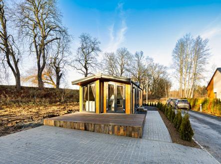 3+kk s terasou, pronájem plně vybaveného modulárního domu se zahradou 244 m2, obec Třtice.