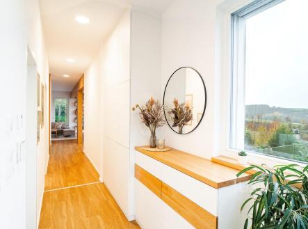 Ve výhradním zastoupení majitelů nabízím prodej moderní dřevostavby rodinného domu z roku 2021, který je v perfektním technickém stavu. Stavba byla realizována s maximálním důrazem na precizní zpracování, kvalitní materiály a nadčasový design. Samozřejmostí je využití moderních technologií, které dokonale ladí s klidem, atmosférou okolní přírody a dechberoucím výhledem do krajiny. Nadstandardně velký svažitý pozemek umožňuje případné rozdělení na dvě samostatné části. Jak dům, tak i stavby na něm jsou promyšleny do posledního detailu s využitím špičkových materiálů a technologií. Na pozemku se navíc nachází: - bioklimatická pergola, elektricky ovládaná - kryté parkovací stání pro tři vozidla - venkovní kůlna na nářadí / sklad potravin - krytá garáž pro moto či jako úložný prostor na venkovní věci - venkovní ohniště - relaxační objekt SPA (ve stadiu těsně před dokončením) - vinný sklípek - udržovaná zahrada s dřevinami - rekuperace s aktivním ohřevem vody a zpětným využíváním tepla a tepelné čerpadlo – FUTURA JABLOTRON Klíčové údaje k nemovitosti: - dispozice 3+kk se dvěma koupelnami, dvěma šatnami a technickou místností - možnost úpravy dispozice až na 5+kk (připraveno v projektu) - úžasný výhled ze všech obytných místností a kuchyně do okolí - na pokoj a kuchyň navazuje prostorná venkovní terasa ohraničená sklem - podlahová plocha jednotlivých místností: 133 m² - dřevěná okna s bezpečnostním sklem Connex (nerozbitná) a posuvným HS portálem se vstupem na terasu - předokenní hliníkové žaluzie – i na dálkové ovládání přes aplikaci - designový plynový krb na propan - kuchyňská linka na míru s kamennou deskou Technistone - centrálně ovládané podlahové topení – odporové kabely ve všech místnostech - vestavěný lakovaný nábytek a nábytek na míru z dubové dýhy - schody a parapety z masivního dubu - designové osvětlení od studia DELTA LIGHT - koupelny navržené designérem Františkem Klinovským - bezpečnostní systém Jablotron s napojením na centrální pult ochrany (okna, dveře) - dům stavěla renomovaná společnost DOMESI, která se specializuje na dřevostavby - na pozemku před dokončením SPA, které může být upraveno na objekt pro bydlení s možností samostatného oddělení od obytného domu (zamýšleno také jako ubytování/dlouhodobý pronájem) Klíčové benefity: • nadstandardně velký pozemek s možností rozdělení na dvě části • úžasný výhled do okolí • dům s mimořádným designem a moderními technologiemi • možnost změny dispozice domu • chytrá domácnost pod plnou kontrolou přes aplikaci • 100% stav nemovitosti bez nutnosti dalších výdajů • ekologická dřevostavba, která „dýchá“ a má výborné mikroklima • příjemní sousedé, vynikající místní komunita s kulturními akcemi pro děti i dospělé • krásná okolní příroda • velmi dobrá dopravní dostupnost Lokalita Trubská: V obci Trubská žije cca 200 obyvatel a nachází se v malebném prostředí s výbornou dostupností do Berouna i Prahy, kdy za 6 minut jste v Berouně a cca za 23 minut na metru Zličín. Okolí nabízí klid, čistý vzduch, turistické trasy i cyklostezky. Obec je součástí chráněné krajinné oblasti Křivoklátsko, což zajišťuje krásnou přírodu v okolí. Pokud Vás tato mimořádná nemovitost zaujala, prosím kontaktujte mě a rád Vám zprostředkuji její prohlídku.