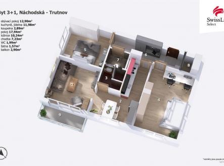 Pronájem bytu 3+1 69 m2 Náchodská, Trutnov