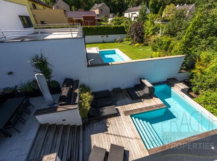 Elegantní moderní dvougenerační vila ve vyhledávané klidné lokalitě v obci Tuchoměřice. Tento nový nadčasový dům je postaven na velkém pozemku s nádhernou zahradou, která díky vzrostlé vegetaci zajištuje absolutní soukromí a klid. K dispozici dva bazény. Interiér domu je prostorný a plný světla díky velkým oknům, která nabízejí nádherné výhledy. Byly použity pouze špičkové materiály a zařizovací předměty. Moderní design je propojen s prvky luxusu a pohodlí, což vytváří prostor, který je zároveň esteticky příjemný a funkční. Dům je navržen tak, aby nabízel dostatek prostoru pro dvě rodiny a případně i chůvy a je dokonalým spojením elegance, komfortu a soukromí pro náročné rodiny, které hledají exkluzivní životní styl. Nemovitost se dá rozdělit na dva plně funkční samostatné domy s vlastními zahradami, bazény a parkováním. Tuchoměřice je malebná obec ležící v okrese Praha-západ. Své půvabné a historické prostředí kombinuje s výhodami moderního života a snadným přístupem jak do Prahy tak na letiště. Atmosféra vesnice je klidná a příjemná, což z ní činí oblíbené místo pro trvalé bydlení i rekreační únik z městského shonu. Tuchoměřice tak představují ideální kombinaci historie, přírody a moderního života, což činí tuto obec atraktivním místem pro bydlení i návštěvy. V blízkosti vyhlášené mezinárodní školy a školky v blízkých Nebušicích. Pro podrobné info o nemovitosti, vybavení a ceně kontaktujte RK.