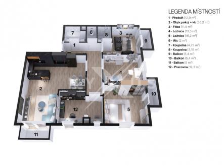 Prodej bytu 5+kk - 120 m², 3 balkony, komora, 2 parkovací stání, Tuchoměřice
