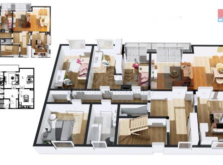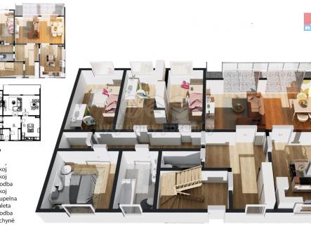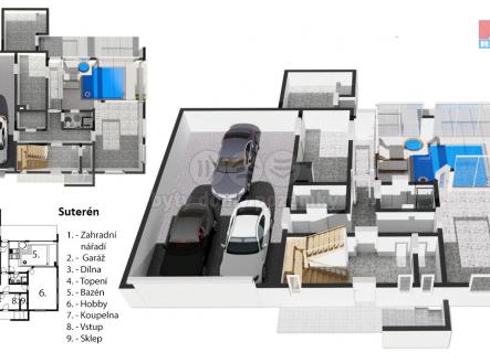 Nabízíme k prodeji velkorysý rodinný dům se třemi bytovými jednotkami a společným zázemím z roku 2005 o celkové ploše přes 650 m² na exkluzivním místě přímo u lesa v klidné části obce Tuchoměřice. Tato unikátní nemovitost přímo vybízí k neomezeným možnostem využití, a to jak jako vícegenerační bydlení, tak na investici, tak jako zázemí prosperující společnosti. V nemovitosti se nachází: v suterénu garáž pro 4 auta, technické/skladovací prostory, koupelna s WC, vnitřní bazén a pracovna. V 1. a 2. NP se nachází 2 prostorné byty 5+1 s krbem a terasou, každý o velikosti přes 195m². Ve 3. NP je byt 1+kk o velikosti 48m². Současné půdorysy i vizualizace možného budoucího stavu přikládáme do fotografií. Dům stojí na jižně orientovaném pozemku s výhledem do lesa, součástí pozemku je i tenisový kurt, celková plocha parcely 2.259m². Parkovací místa jsou jak v garáži, tak před domem, tak na ulici. Metro Dejvická/Bořislavka cca 20 minut jízdy. Pro více informací nás neváhejte kontaktovat.