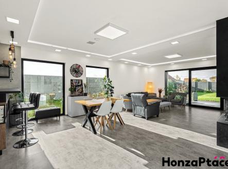 Nabízím vám novostavbu rodinného domu, která splní představy o pohodlném, efektivním a útulném bydlení. Tento přízemní dům o dispozici 4+1 byl právě dokončen a připraven pro nové majitele. Nachází se v klidné lokalitě s výbornou dostupností do Prahy, a díky svému umístění a řešení poskytuje příjemné soukromí. Užitná plocha 147 m² je rozvržená tak, aby každý prostor dával smysl. Srdcem domu je prostorný obývací pokoj s krbem a velkými francouzskými okny, který propojuje interiér se zahradou. Na něj navazuje kuchyň s linkou na míru a vestavěnými spotřebiči Siemens. K dispozici je také technická místnost se sprchou, praktická spíž a šatna přímo u ložnice. Dům nabízí vysoký komfort – podlahové vytápění ve všech místnostech, trojskla s venkovními žaluziemi a inteligentní systém Loxone, který řídí vytápění, osvětlení, žaluzie, vstup i bezpečnostní prvky. Samozřejmostí je zabudovaný audio systém a příjemné noční podsvícení. Rovinatý pozemek o rozloze 811 m² je plně oplocený a ideální pro relaxaci, zahradní úpravy nebo dětské zázemí. Díky promyšlenému osazení domu nabízí skutečné soukromí. Dešťová voda je sbírána do podzemní retenční nádrže. Parkování pohodlně přímo na pozemku. Tato novostavba nevyžaduje žádné další úpravy – dům je připraven k okamžitému nastěhování. Moderní, efektivní a přitom velmi příjemný domov. Přijďte se přesvědčit. Ukazatel „E“ v průkazu energetické náročnosti budovy (PENB) vyjadřuje celkovou energetickou náročnost stavby. Největší váhu má způsob vytápění – bohužel nikoliv pouze z hlediska spotřeby energie, ale zejména z ekologických dopadů. Jak mi bylo vysvětleno, elektricky vytápěné domy získávají horší klasifikaci především proto, že výroba elektřiny v ČR stále z převážné části pochází ze spalování uhlí. To se následně promítá do výsledné známky. V přiloženém dokumentu je možné ověřit, jak jednotlivé dílčí parametry odpovídají výsledným třídám energetické náročnosti – například vytápění ve třídě B, celkové tepelné ztráty ve třídě C apod.