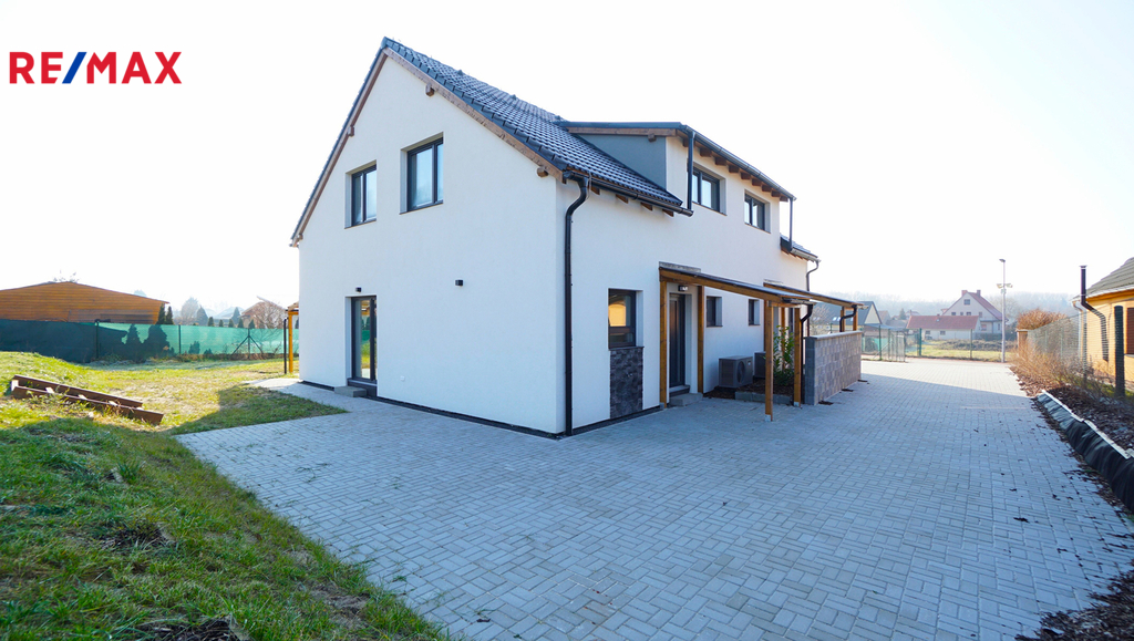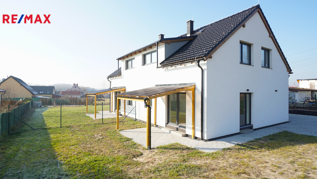 Ve výhradním zastoupení majitele si vám dovolujeme nabídnout k prodeji polovinu patrového cihlového dvojdomu o dispozici 5+kk 128 m² se dvěma koupelnami a zahradou o výměře 527 m². Dům je rozdělen dle prohlášení vlastníka, kde každá strana má svůj vlastní oddělený zastřešený vstup, pergolu a oddělenou zahradu s vlastním parkovacím stáním. Dům byl kolaudován v roce 2024 a disponuje vlastní společnou příjezdovou cestou 110 m². Nemovitost se nachází v obci Tuhaň, která je vzdálena 20 minut jízdy autem od hranice hlavního města Prahy. Objekt je napojen na vodovodní řád a el. Odpad je momentálně řešen jímkou. Napojení na kanalizaci bude možné v průběhu roku 2025. Dům byl dokončen koncem roku 2024 a je připraven k okamžitému užívání. Nachází se zde bytová jednotka, samostatně zapsaná v katastru nemovitostí, kde výměra činí 108,31 m² s dispozici 5+kk, dále prostorným podkrovím o výměře cca 20 m², dvěma koupelnami, pergolou a vlastním tepelným čerpadlem (vzduch-voda). Každá bytová jednotka má svůj vlastní elektroměr a vodoměr. Ohřev vody zajištuje el. boiler. Vytápění je zde řešeno podlahovým topením, které je rozvedeno v každém patře. V rámci vytápění jsou další možností kamna. Dům je rozdělen na samostatné jednotky, kde každá bytová jednotka má své výlučné právo užívání, rozdělené dle prohlášení vlastníka. Příjezdová cesta a podíl na společných částech se bude rovnat 1/2. Obec Červená Píska spadá pod obec Tuhaň. V rámci 20 minuté jízdy se dostanete autem do Letňan. Dále je možnost využít dálničního spojení na černý most cca 30 min. Lze využít i autobusové spojení na Mělník, kde zastávka se nachází jen 5 minut chůze. S financováním vám moc rádi pomůžeme. Pro více informací neváhejte kontaktovat makléře nabídky.