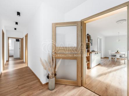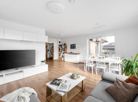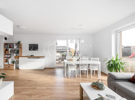 Hledáte kvalitní a komfortní rodinné bydlení v samostatně stojícím bungalovu? Nadstandardní technické zázemí a skvělá dostupnost do Prahy po dálnici D7 (20-25 min. ze Zličína) jsou jen výběrem jeho hlavních předností. Tento dům z roku 2021 o dispozici 4+kk nabídne nevšední kvalitu i komfort pro celou Vaši rodinu. Oceníte zejména technické vybavení domu - nízkoenergetická třída A je zárukou, že budete šetřit jak přírodu, tak Vaši rodinnou peněženku. Spotřeba energie tu činí jen cca 6 MWh ročně. Vytápění je ve všech místnostech zajištěno podlahovým vytápěním. Zdrojem tepla jsou solární panely a tepelné čerpadlo, podpořené rekuperací. Pro příjemnou atmosféru je možnost dobudování krbu. Jednotlivé prvky jsou v domě navíc propojeny systémem SMART HOME, díky kterému můžete vytápění i třeba nastavení žaluzií časovat a řídit na dálku přes svůj mobilní telefon. Zároveň Vám umožní kontrolovat a ovládat bezpečnostní prvky v domě, včetně domovní kamery nebo zabudovaného alarmu v okenních rámech. Polohu domu pak oceníte především v situaci, kdy potřebujete pohodlnou dostupnost po dálnici D7 do severozápadní části Prahy, kam se dostanete během cca 20-25 minut. Zastavěná plocha domu činí 151 m2 na pozemku o velikosti 742 m2. Kromě přízemní dispozice 4+kk (užitná pl. cca 119 m2) je k dispozici i úložná půda. Lokalita: Obec Tuřany se nachází 3 km západně od královského města Slaný, které je přirozeným spádovým centrem ležícím v blízkosti dálnice D7, která zajišťuje komfortní dopravní dostupnost do hlavního města. Veřejná doprava mezi Tuřany a Slaným je tvořena dvěma autobusovými linkami s dojezdovým časem 5-10 minut. Slánsko je od roku 2019 zahrnuto do systému PID (Pražské integrované dopravy). Občanská vybavenost Slaného je na vysoké úrovni a nabízí vše potřebné pro obyvatele v celé aglomeraci. Přímo v Tuřanech se nachází mateřská škola i první stupeň základní školy. Ve Slaném se pak kromě několika dalších mateřských a základních škol nachází také gymnázium a obchodní akademie. Vyhlášená je také místní nemocnice a na své si přijdou i fanoušci kulturních (divadlo, kino) a sportovních aktivit (plovárna, několik sportovních klubů - fotbal, hokej, atletika, krasobruslení).