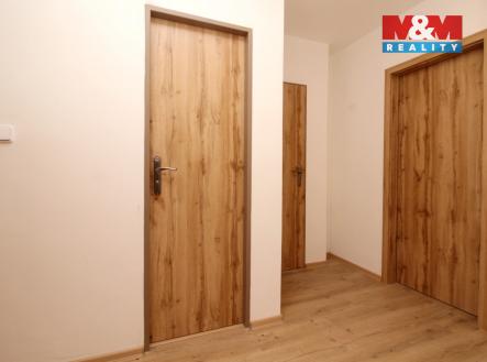 Pronájem nově zrekonstruovaného bytu 1+1 s dvěma sklepy ve zvýšeném 1. nadzemním podlaží zděného domu. V bytě je nová kuchyňská linka s elektrickou troubou a sklokeramickou varnou deskou. Vytápění je elektrickými přímotopy a ohřev vody bojlerem. Elektrická energie bude přehlášena na nájemníka. Parkovat lze na parkovišti přímo před domem. K nastěhování od ledna 2026. Více informací u makléře.