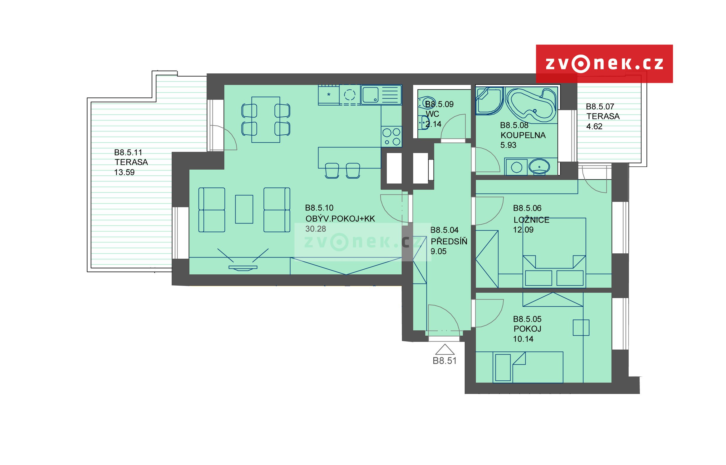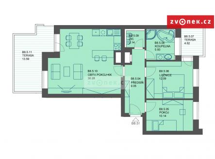 Pronájem bytu 3+kk na Zahrádkách s dvěma velkými terasami.