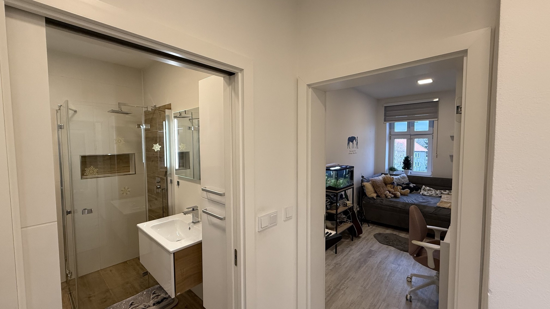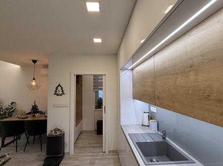 Prodej kompletně zrekonstruovaného bytu 3+kk, o podlahové ploše 62 m2, s prostorným sklepem, v zrevitalizovaném historickém domě, v centru Uherského Brodu, na náměstí Svobody. Poloha domu, dispoziční řešení místa, uzavřený trakt s parkovištěm, dětským hřištěm a malým parkem, to vše nedaleko od samotného centra města, tvoří velmi klidné, příjemné a kultivované místo pro život. Byt je situován ve 2.NP a prošel v roce 2019 kompletní rekonstrukcí. Od vylití podlah a položení moderní vinylové krytiny, přes kompletní výměnu elektroinstalace v mědi s 3 fázovým jističem, obměnu veškerých rozvodů vody a odpadů, zbudování prostorné koupelny se sprchovým koutem, WC a prádelnou, osazení stolařem zhotovené nové kuchyně s moderními elektrospotřebiči, zhotovení sádrokartonových podhledů, rozmístěním úsporných LED světel do jednotlivých prostor bytu a to jak přímého, tak nepřímého osvětlení a v neposlední řadě také výměnou původních oken za moderní plastová. Veškeré spotřebiče, vestavěné lednice s mrazákem, horkovzdušná trouba, mikrovlnná trouba, myčka nádobí a odsavač par jsou značky Gorenje, indukční varná deska pak Electrolux. V koupelně je v sestavě pračka a sušička AEG. V obývacím pokoji je pro komfort naistalována i klimatizace. Díky citlivé rekonstrukci, výběru materiálů, barevnému schématu v celém bytě, chodbou počínaje a dětským pokojem konče, a zejména vkusu majitelky bytu, vznikl velice hezký, útulný domov. Bylo myšleno samozřejmě i na úložné prostory na vstupní chodbě, umístění svršků, bot, v dětském pokoji a ložnici pak na uložení oblečení. V bytě je již na první dojem cítit teplo, útulno a je radost se zde vracet. Topení a dodávku teplé vody zajišťuje nedaleká plynová kotelna s výměníkovou stanicí. Díky kvalitní cihlové konstrukci bytového domu, moderním otvorovým výplním a úspornému osvětlení v bytě, jsou i náklady spojené s provozem bytu velmi příznivé. Nadstandartně velký sklep ( 9 m2) v suterénu domu, pak nabízí prostor pro uložení všeho nepotřebného v bytě. Vlastní dům má 2 vchody a to jak z přilehlého parčíku s dětským hřištěm a vysokými jehličnany, tak i z druhé strany, do dvora na parkoviště. Poblíž jsou i dětská hřišta a koupaliště. Do samotného centra města, Tyršových sadů, školy, školky, samoobsluhy, lékárny, drogerie, kavárny, restaurace nebo na Masarykovo náměstí, vše je v dochodné vzdálenosti do několika minut pěšky.