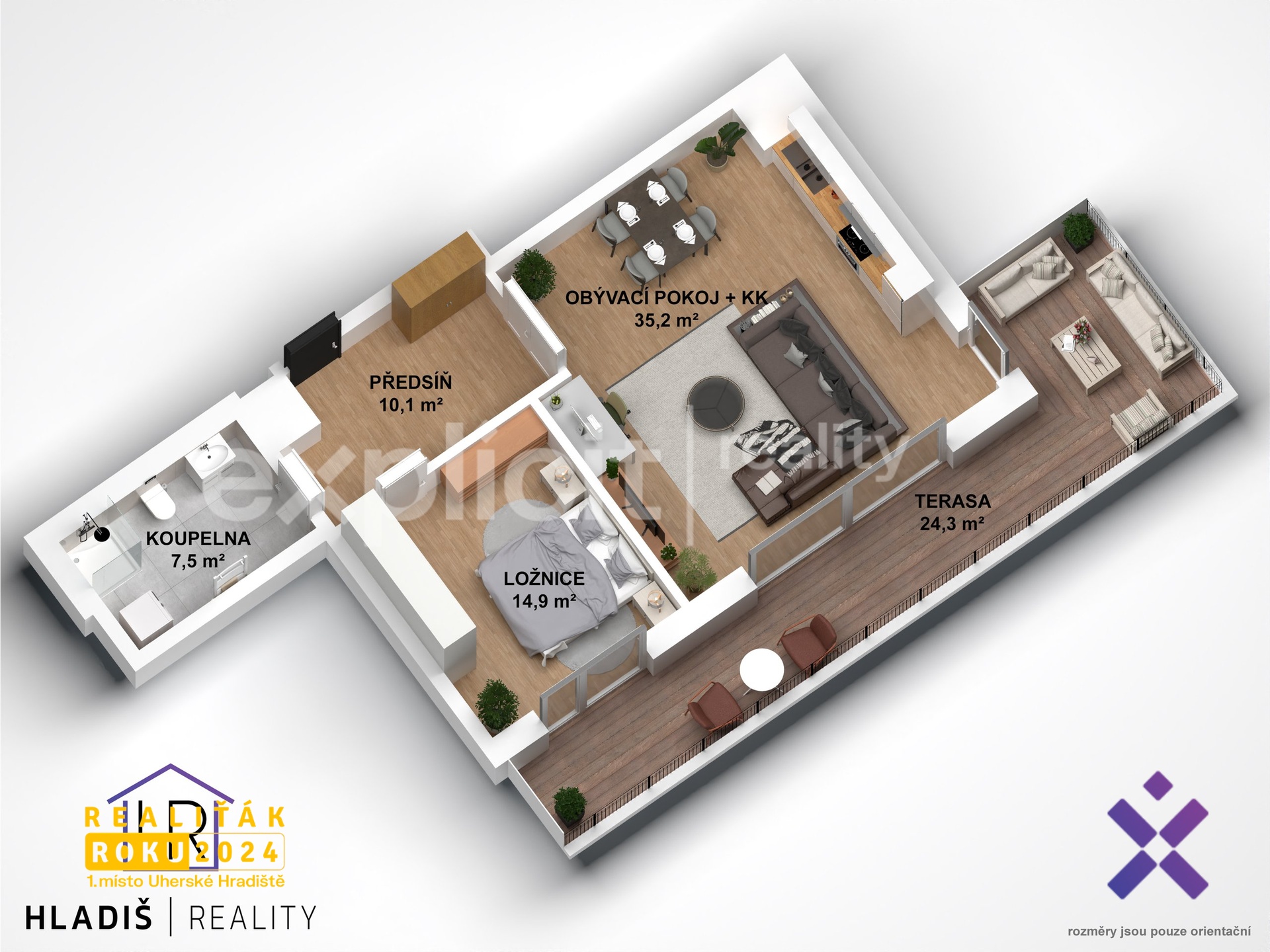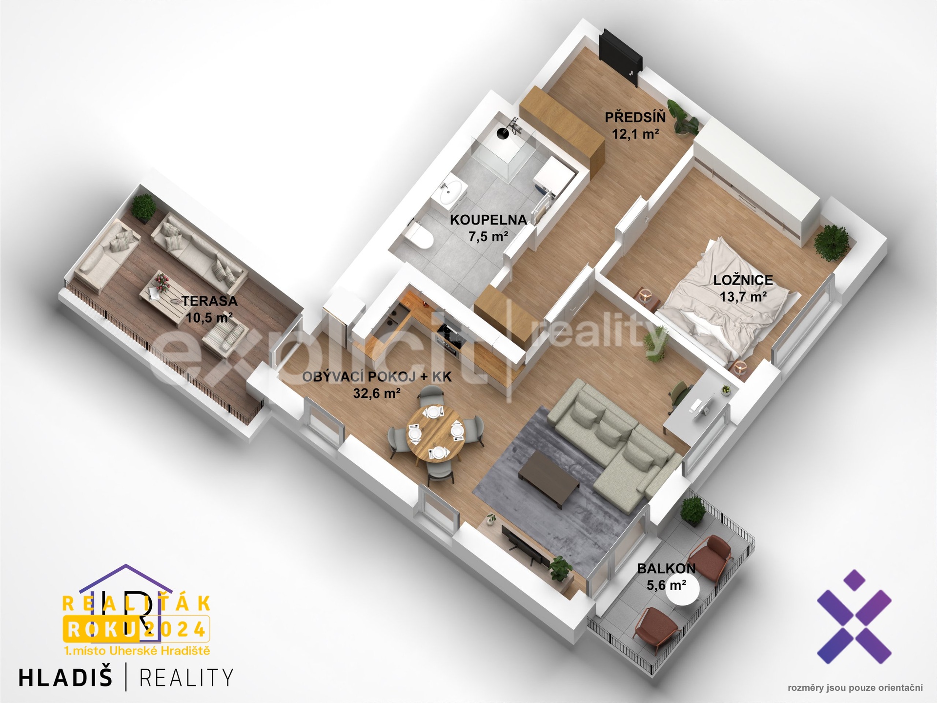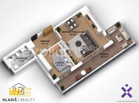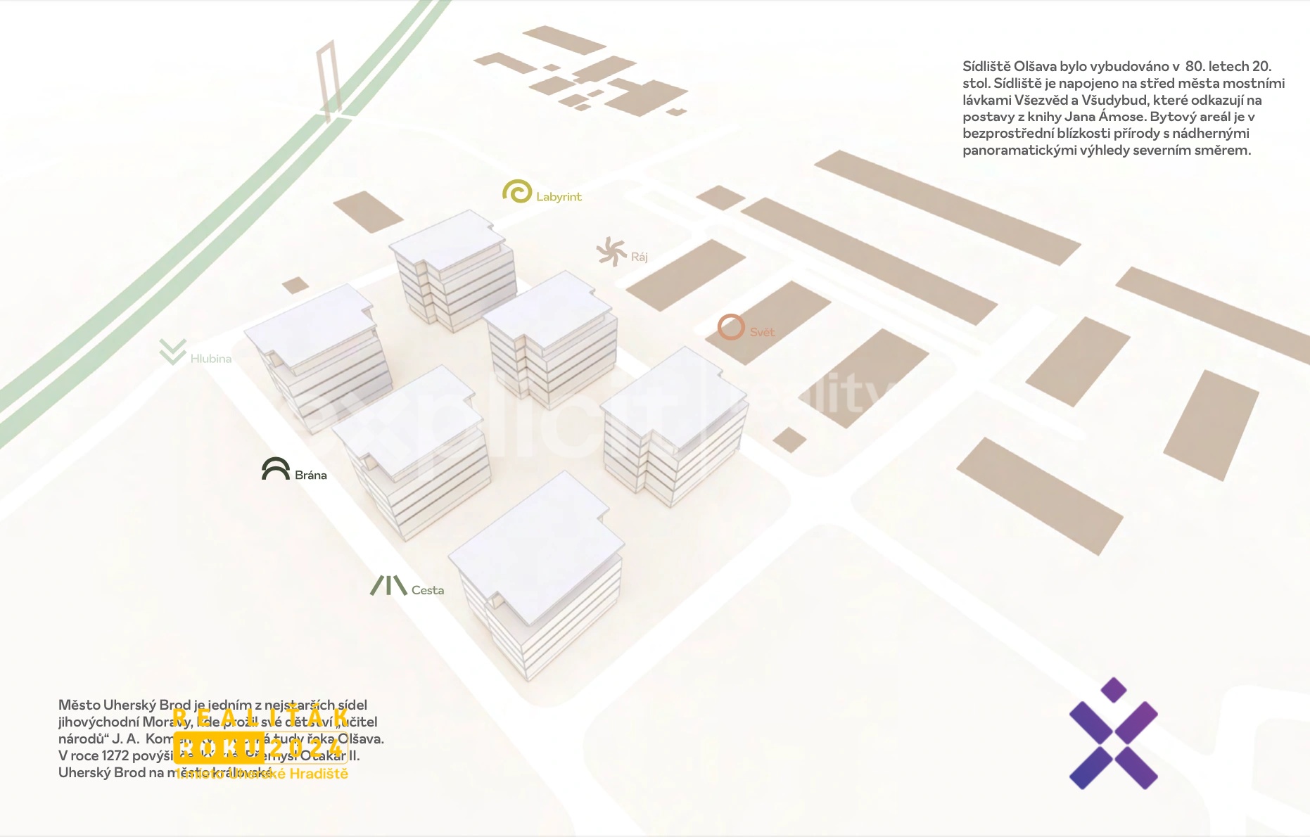 Bydlení s výhledem, který vás každý den překvapí. Moderní rezidence na sídlišti Olšava v Uherském Brodě spojuje šetrnost k přírodě, úsporný provoz a elegantní architekturu. A právě teď máte šanci získat jeden ze dvou posledních bytů 2+kk v domě E, jehož kolaudace je plánována na červenec až srpen 2026. - moderní rezidenční projekt v městě Uherský Brod, v klidné lokalitě na okraji města, v prostoru parku Škrlovec za řekou Olšavou - výhledy na okolní kopcovitou krajinu Bílých Karpat - nízkoenergetické provedení, moderní architektura navržená architektonickým ateliérem GG Archico - projekt oceněn v soutěži „Stavba roku Zlínského kraje 2024“ - domy mají nadčasový vzhled: monochromatická škála fasád, balkony s dekorem světlého dřeva, antracitová okna a klempířské prvky.  - dispozice 2+kk s obytnou plochou 66 a 67 m² – ideální pro jednotlivce, pár nebo menší rodinu - balkon s terasou 16 a 24 m² – prostor pro relax i výhledy - celková plocha bytu 82 a 91 m² - sklepní kóje 4 m² – praktický úložný prostor - byty se nachází v 6. nadzemním podlaží - výtah - lokální rekuperace, podlahové topení, venkovní žaluzie a optický internet - kuchyňská linka není součástí – můžete si vybrat dle vlastního vkusu - obývací pokoj s prostorem na kuchyni, samostatná ložnice, koupelna s WC, předsíň, balkon a sklep - Uherský Brod – město s kompletní občanskou vybaveností a kvalitním zázemím - školy, školky, lékaři, obchody, restaurace, banky i kulturní zařízení - výborná dostupnost městskou hromadnou dopravou - sídliště Olšava – klidné, zelené prostředí s výhledy a přírodou v těsné blízkosti - centrum města propojeno lávkami Všezvěd a Všudybud – praktické a symbolické spojení - široké pracovní možnosti díky různorodému průmyslu ve městě - ideální spojení klidného bydlení a městského komfortu Cena závisí na konkrétním bytě a jeho umístění. Líbí se Vám tato nemovitost? Potkejme se osobně na místě, co Vy na to? Zavolejte mi nebo napište a já Vám sdělím veškeré detaily do poslední cihly. Chtěli byste, abych i Vás zastupoval při prodeji? Stačí mi napsat, jsem tu pro Vás kdekoli a kdykoli. Těším se na Vás :) Hladiš - Reality