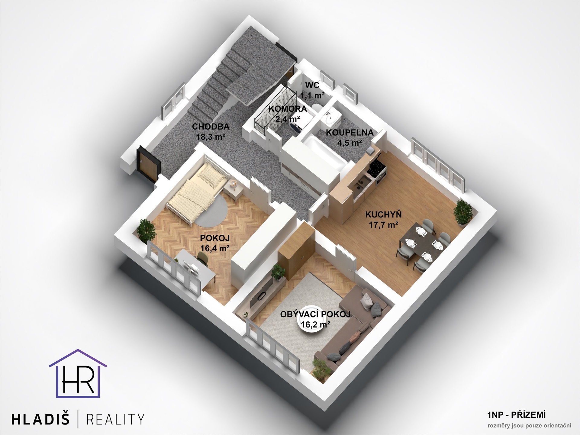 Rodinný dům v Uherském Ostrohu, který má všechno, co od „pořádného domova“ čekáte – klidná ulice, fajn sousedé, velká zahrada a tolik prostoru, že si tu pohodlně sladíte rodinný život s prací nebo podnikáním. Můžete tu mít dětské pokoje, pracovnu, pokoj pro hosty i vlastní ateliér, a pořád budete mít kam růst – půdní prostory dávají domu skvělou rezervu pro budoucí rozšíření přesně podle vašich představ. - dispozice 4+1 – možnost rozšíření na 6+1 skrz podkroví v 2. nadzemním podlaží - celková plocha 238 m², užitná plocha 123 m², plocha pozemku 901 m², balkon 5 m² - sklep 78,9 m² velký, dobře větratelný, ideální pro sklad, dílnu nebo zázemí pro hobby - dům má 2 nadzemní podlaží a 1 podzemní podlaží - parkování před brankou u domu nebo před domem v ulici - kolem domu se dá projet jedině menším autem, traktůrkem nebo kolečkem - pomohu zajistit výhodné financování i dotaci na rekonstrukci - typ stavby cihly, tvárnice, cihlové bloky - střecha, fasáda původní stav, okna dřevěná, dvojitá, podlahy beton, parkety, PVC - koupelna a kuchyně původní, vytápění přes původní plynový kotel, radiátory - prostor pro pračku a sušičku ve sklepních prostorech - elektřina hliník, 230V/400V, plyn, voda z řádu i ze studny (ta je k revitalizaci), ohřev vody bojlerem (možnost plynového ohřevu) - internet bezdrátový, možnost optiky - dům se nachází v klidné obytné zóně Uherského Ostrohu, kde ulicí projíždí prakticky jen ti, kteří zde bydlí. Ideální prostředí pro rodiny s dětmi nebo pro někoho, kdo hledá klidné zázemí. - světové strany kuchyně na jihozápad, pokoje na severovýchod – příjemné světlo během dne - sousedé bezproblémová, stabilní komunita - oblast není záplavová - přístupová cesta zpevněná, přístup pouze z přední strany domu - průjezd kolem domu do zahrady vhodný pro menší auto, traktůrek, stavební kolečko apod. - doprava vlak, autobus, dobrá dostupnost na silniční tahy i dálniční napojení směrem na Uherské Hradiště a okolí - COOP a menší obchody, hospoda, bistro, dětské hřiště, sportoviště, škola, školka, lékař, lékárna, bankomat, pošta - město má vše potřebné pro pohodlný každodenní život – od služeb po volnočasové vyžití. Náklady na provoz vytápění: cca 3 700 Kč/měsíčně (Fonergy), elektřina cca 2 600 Kč/měsíčně (Fonergy), voda cca 720 Kč/měsíčně (Slovácké vodárny) Vizualizace a vyobrazení nemovitosti a pozemku jsou pouze ilustrativní. Závazné údaje o hranicích pozemku jsou uvedeny v katastrální mapě. Při více zájemcích může být prodej uskutečněn formou elektronické aukce. Líbí se Vám tato nemovitost? Potkejme se osobně na místě, co Vy na to? Zavolejte mi nebo napište a já Vám sdělím veškeré detaily do poslední cihly. Chtěli byste, abych i Vás zastupoval při prodeji? Stačí mi napsat, jsem tu pro Vás kdekoli a kdykoli. Těším se na Vás :) Hladiš – Reality