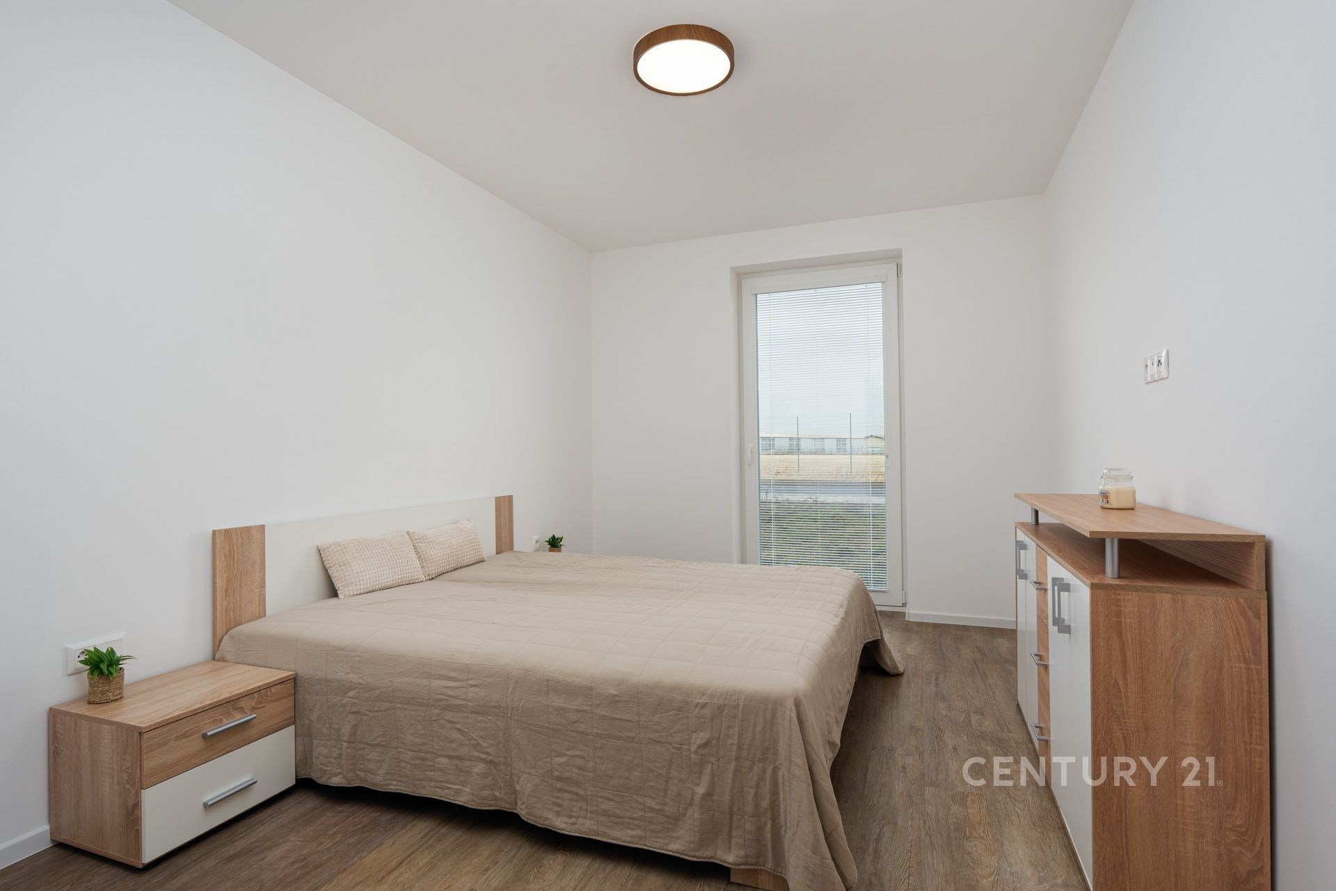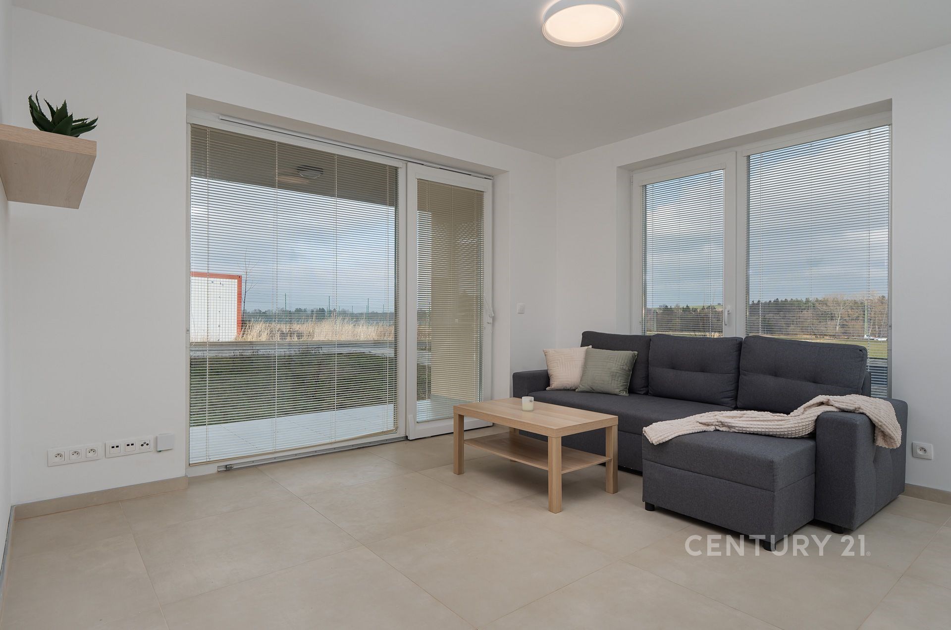 Volné ihned! Ráno otevřete velká okna v obývacím pokoji a místo sousedních domů se díváte do volné krajiny. Je tu ticho, klid a pocit soukromí, který se dnes hledá čím dál hůř. Nikdo vám nekouká do oken, žádný panelák naproti, jen pole a otevřený prostor. Byt je v novostavbě z roku 2022 a hned od prvního kroku působí příjemně, vzdušně a přirozeně. Obývací pokoj s kuchyňským koutem je krásně prosvětlený díky velkým oknům a plynule navazuje na terasu a předzahrádku o velikosti 22 m². Místo, kde si dáte ranní kávu, večer si sednete s knihou nebo jen tak vypnete. Dispozice bytu je praktická a dobře promyšlená. Samostatná ložnice nabízí klid pro odpočinek, další pokoj může sloužit jako pracovna, dětský pokoj nebo pokoj pro hosty. Koupelna s toaletou je společná, samozřejmostí je komora přímo v bytě a další úložný prostor hned vedle bytu. V domě je také kočárkárna. Kuchyň je vybavena indukční varnou deskou, troubou, myčkou a digestoří. Podlahové vytápění zajišťuje příjemný komfort v celém bytě, na oknech jsou žaluzie, podlahy kombinují dlažbu a vinyl. Byt je částečně zařízený – k dispozici je sedací souprava s konferenčním stolkem, v ložnici postel, noční stolky a komoda. Velkou výhodou jsou dvě parkovací místa přímo naproti bytu. Z bytu na ně vidíte, máte je stále pod kontrolou a parkování řešíte bez stresu. Tohle je byt pro někoho, kdo hledá klidné bydlení v novém domě, kontakt s přírodou a pocit soukromí, ale zároveň chce mít vše potřebné po ruce. Místo, kde se dobře bydlí, ne jen přespává. Zavolejte si o prohlídku ještě dnes.