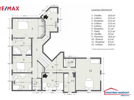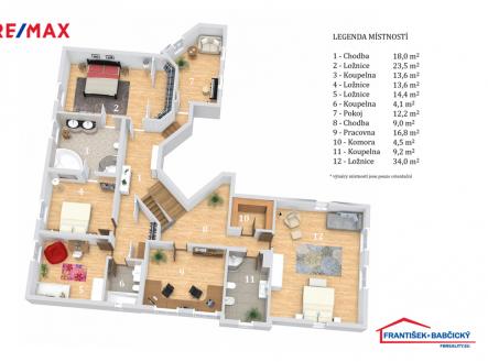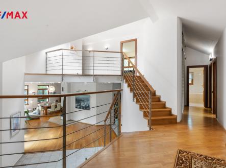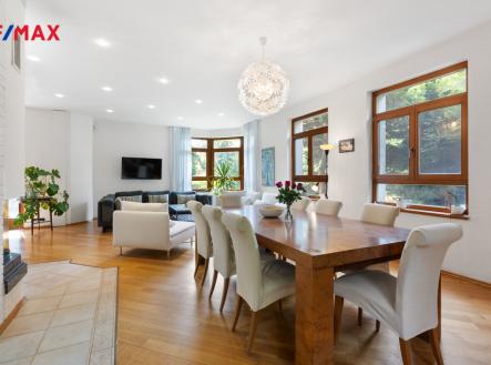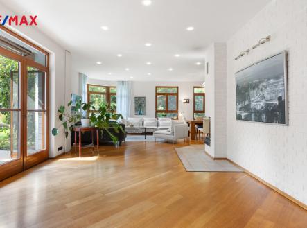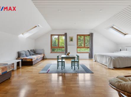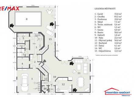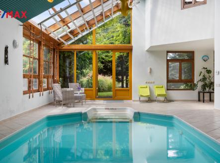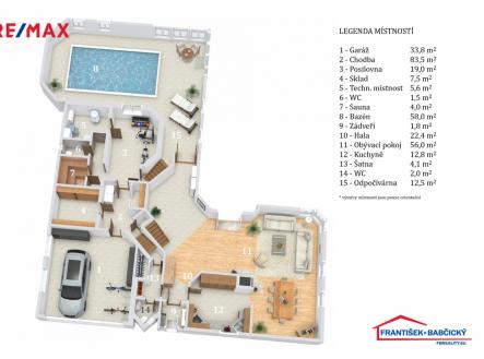 Nabízím k prodeji prostorný dům s plochou 500 m², na krásném pozemku 2 978 m², v obci Úhonice, na adrese Jenečská 21. Dům byl navržen jako individuální stavba s důrazem na vzdušnost, množství přirozeného světla a maximální propojení interiéru se zahradou. Suterén tvoří dvojgaráž 33,8 m², chodba 8,5 m², posilovna 19 m², sklad 7,5 m², technická místnost 5,6 m², WC 1,5 m² a sauna 4 m², u které je sprchový kout a umyvadlo. Praktická jsou 2 schodiště – jedno přímo do předsíně v přízemí, druhé do relaxační zóny. Přízemí tvoří prostorná hala 24 m² se vstupem na zahradu a schodištěm do mezipatra, obytný prostor s krbem a jídelnou 56 m² s velkými okny, díky kterým je celý prostor velmi světlý a kuchyně 12,8 m² s nadstandardním úložným prostorem. Na vstup navazuje šatna 3,8 m² a toaleta 2 m². Dále je zde relaxační zóna 58 m² s krytým bazénem a odpočívárnou 12,5 m², osazená prosklenou stěnou a přímým vstupem na zahradu. Mezipatro tvoří chodba 18 m², 3 ložnice 23,5 m², 13,6 m² a 13,6 m², 2 koupelny 13,6 m² a 4,1 m² (v jedné vana a v druhé rohová vana i sprchový kout). Z chodby vedou 2 schodiště – první do místnosti 12 m², druhé do podkroví. Podkroví tvoří galerie 9 m² se střešními okny, pokoj 34 m², pracovna 15,5 m², koupelna se sprchovým koutem a WC 6,7 m², šatna 11,5 m² a půda s výměrou 74 m². Dům byl kolaudován v roce 2000. Je postaven z tvárnic YTONG a zastřešen střešní krytinou Bramac. Schodiště jsou z dubového masivu, opatřená ocelovým zábradlím s lankovým výpletem. Podlahy z dubových palubek a dlažba. Okna jsou dřevěná s izolačním dvojsklem. Objekt je napojen na zabezpečovací systém. Vytápění tepelným čerpadlem se záložním elektrokotlem, navíc krb. Objekt je připojen na elektřinu a internet. Plyn je přiveden na hranici pozemku. Voda je řešena 2 studnami – jedna napojená na dům přes úpravnu, druhá pro zavlažování. V současnosti napojen na jímku - výstavba veřejné kanalizace v obci probíhá. Zahrada je vzrostlá, udržovaná a od počátku promyšleně budovaná s důrazem na soukromí. Součástí je přírodní biotop, vzrostlé stromy i ovocná zahrada a okrasné kameny. Nechybí zahradní altán napojený na elektřinu, terasy a přímý vstup do wellness. Jedná se o dům, který nabízí víc než jen dostatek místa. Díky promyšlenému návrhu a kvalitnímu provedení a dlouhodobé údržbě je v dobrém stavu. Spojuje pohodlí rodinného bydlení s prvky výrazně zvyšují komfort – vnitřní bazén, zahrada s biotopem, prostorné zázemí i naprosté soukromí. To vše v klidné obci s rychlým spojením do Prahy. PENB se zpracovává, proto uvádíme G. Úhonice leží několik minut jízdy od hlavního města, s rychlým napojením na dálnici D6 a autobusovým spojením na „M“ Zličín. V obci je základní občanská vybavenost vč. MŠ, obchodu a restaurace. Další služby jsou dostupné v sousední Rudné nebo na Pze 5 – Zličíně, kde se nachází OC a kompletní síť obchodů a služeb. Pokud hledáte kvalitní a dlouhodobé bydlení v dosahu města, ale zároveň v klidném prostředí se soukromím, tato nemovitost je výbornou volbou.