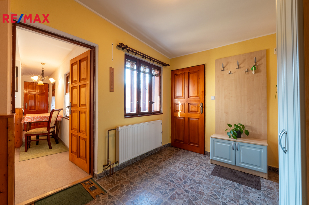 Nabízím Vám ke koupi rodinný dům o zastavěné ploše 217 m², který stojí na pozemku o celkové výměře 410 m². Dům je situován v samotném centru obce Újezd a díky umístění mezi sousedními domy, nabízí před vstupem příjemný a klidný prostor vhodný například pro venkovní posezení. Po vstupu do domu vás přivítá prostorná chodba s úložnými prostory, ze které je možné vstoupit do velkého průchozího pokoje vedoucího dále do garáže. Z chodby je rovněž přístupná koupelna se sprchovým koutem a toaletou a také schodiště do druhého podlaží. V patře se nachází hlavní ložnice a volný půdní prostor, který nabízí možnost dostavby jednoho velkého či dvou menších pokojů podle potřeb nové rodiny. Z chodby v přízemí lze vstoupit také do hlavní obytné části domu, tvořené obývacím pokojem, kuchyní s jídelnou a samostatnou toaletou. Stavba má smíšené zdivo, sedlovou střechu s plechovou krytinou a dřevěná okna. Dům je napojen na elektřinu 240 V (v garáži také 400 V), obecní vodovod a veřejnou kanalizaci. Vytápění zajišťuje kotel na tuhá paliva s oběhovým čerpadlem, ohřev vody nový elektrický bojler. Rozvody vody a odpadů jsou řešeny v mědi a plastu. Dům nebyl zateplen, což poskytuje možnost individuálního řešení při případné rekonstrukci. PENB se v tuto chvíli zpracovává. Újezd u Valašských Klobouk je vyhledávanou obcí díky své poloze i zázemí. Najdete zde školu, školku, obchod, restauraci i základní služby, zároveň je obec velmi dobře dostupná do okolních měst – Zlín, Luhačovice i Valašské Klobouky. V okolí je řada možností k trávení volného času – turistické trasy, dětská hřiště, koupaliště, lyžařský vlek či památník Ploština. Pokud hledáte dům v klidné obci s dobrou dostupností a chcete si vytvořit domov podle svých představ, tato nemovitost může být ideální volbou. Pro sjednání osobní prohlídky mě neváhejte kontaktovat a já se na Vás budu těšit. Matyáš Paulík RE/MAX ,,Majitel si vyhrazuje právo vybrat kupujícího na základě jim zvolených kritérií. Veškeré údaje v inzerátu mají informativní charakter a nepředstavují nabídku ve smyslu § 1731 a § 1732 občanského zákoníku ani veřejný příslib dle § 1733. Z této nabídky nevzniká nárok na uzavření smlouvy."