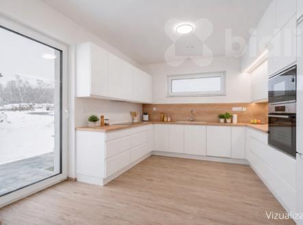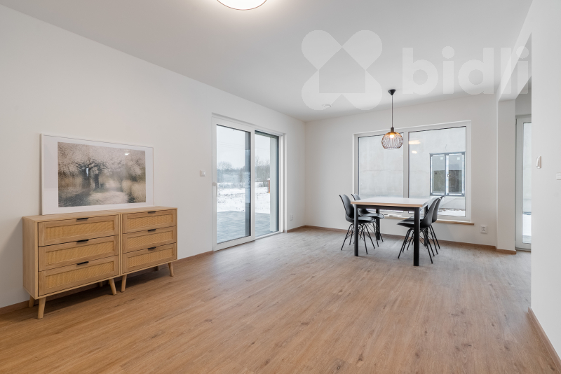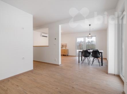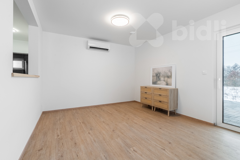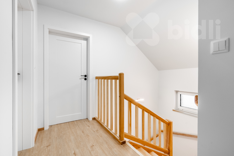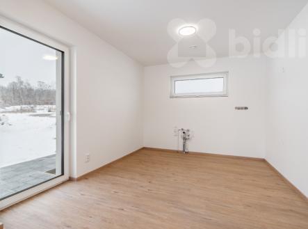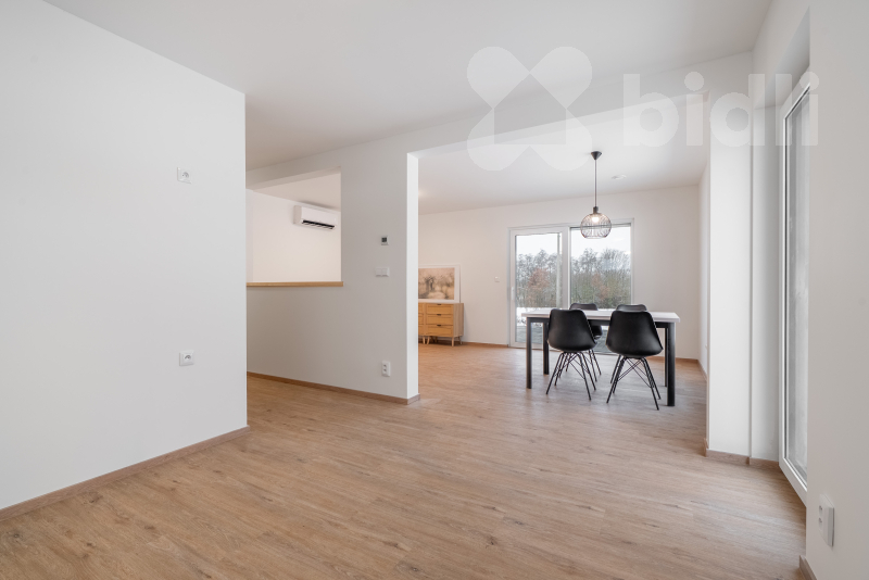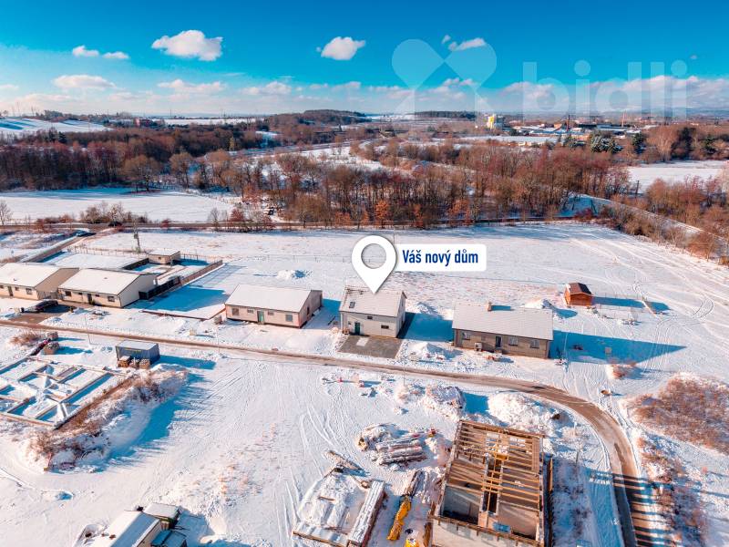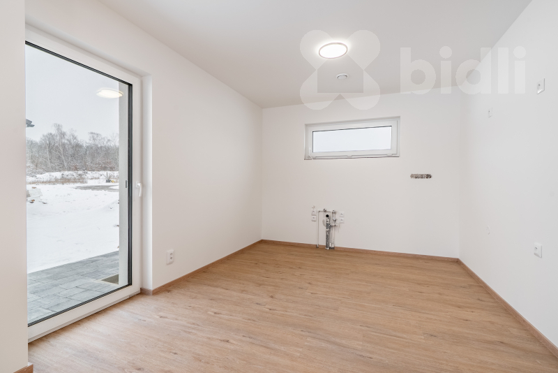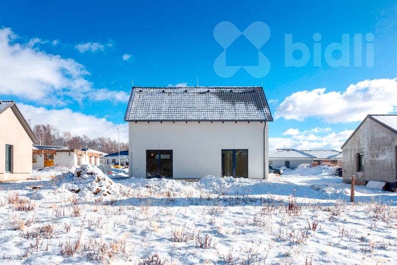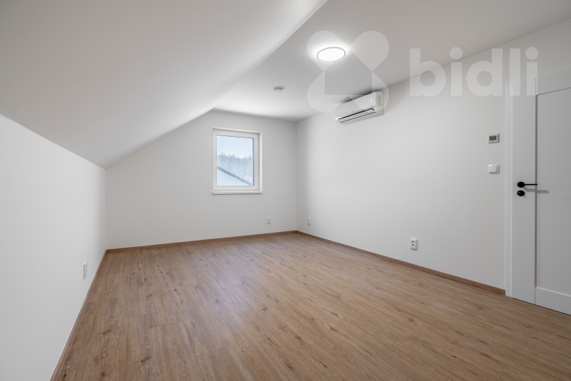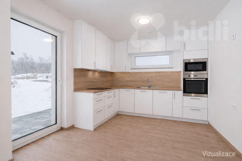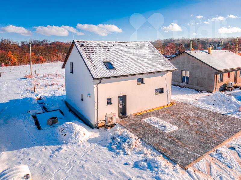 Nabízíme k prodeji moderní, právě dokončenou nízkoenergetickou rodinnou dřevostavbu v klidné části obce Újezdeček, jen pár minut od Teplic. Dům o dispozici 5+kk a užitné ploše cca 120 m² je situován na prostorném pozemku o výměře 850 m². V přízemí se nachází zádveří, technická místnost, koupelna se sprchovým koutem a WC, ložnice nebo pokoj pro hosty a prostorný obývací pokoj s kuchyňským koutem se vstupem na terasu. V patře jsou dva dětské pokoje, ložnice, koupelna s vanou i sprchovým koutem a samostatné WC. Vytápění domu je řešeno podlahovým topením, doplněným multisplitovou klimatizační jednotkou s pěti vnitřními jednotkami, která umožňuje efektivní vytápění i chlazení jednotlivých místností. O příjemné vnitřní klima se stará centrální rekuperace s předehřevem. Dům je vybaven plastovými okny s trojskly, HS portálem na terasu a venkovními roletami na dálkové ovládání. V obývacím pokoji je připravena instalace krbových kamen. Přízemí domu je řešeno v bezbariérovém provedení. Do patra vede dřevěné schodiště z masivního jasanu. Obě toalety jsou vybaveny integrovaným bidetem, koupelna v patře je prosvětlena střešním oknem. Na pozemku je vybudováno parkovací stání až pro tři vozidla, chodník a terasa z dlažby. K dispozici je retenční nádrž na dešťovou vodu. Pozemek je připraven pro individuální dokončení oplocení a zahrady dle přání nového majitele. Prodejce nabízí možnost dokončení interiéru i exteriéru na klíč, včetně kuchyňské linky, vestavného nábytku a realizace zahrady. Obec Újezdeček nabízí klidné bydlení v blízkosti přírody s výbornou dostupností do Teplic.