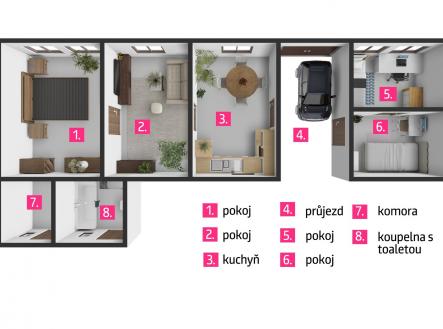 Prodej rodinného domu s pozemkem a stodolou – Únanov u Znojma (1 398 m²) Investiční příležitost v centru obce s možností další výstavby Nabízíme k prodeji původní rodinné stavení v obci Únanov, vzdálené pouhých pár minut od města Znojma. Nachází v centru obce, v klidné ulici, a díky své poloze, dispozici a velikosti pozemku představuje zajímavou investiční příležitost – ať už pro trvalé bydlení, rekreaci, nebo budoucí výstavbu. Nemovitost je dispozičně řešena jako 2+1, přičemž součástí je i výměnek se dvěma dalšími pokoji, což rozšiřuje možnosti využití například pro vícegenerační bydlení nebo samostatnou jednotku. Dům je postaven ze smíšeného zdiva a je ve zcela původním stavu, vhodný ke kompletní rekonstrukci podle představ nového majitele. Stavení je napojeno na elektřinu, a to včetně zásuvky 380 V. Vytápění zajišťují plynové WAFky, ohřev vody je řešen přes karmu. Voda je čerpána z vlastní studny o hloubce cca 8 metrů, avšak veřejný vodovod vede na hranici pozemku v komunikaci. Odpady jsou svedeny do veřejné kanalizace. Na pozemku se dále nachází hospodářské budovy, garáž a velká stodola, která může sloužit jak k hospodářskému, tak k podnikatelskému využití. Za stodolou se nachází rozlehlá a rovinatá zahrada ve tvaru obdélníku, která má plochu 509 m² a díky svému charakteru se nabízí možnost budoucí výstavby dalšího rodinného domu. Přístup na pozemek je možný skrze průjezd, kterým pohodlně vjedete i autem. Před domem se nachází předzahrádka a na zahradě najdete několik ovocných stromů, které dotvářejí příjemné prostředí. Lokalita – proč právě Únanov: Únanov je žádaná obec v těsné blízkosti Znojma, kam se dostanete autem během několika minut. V obci je velmi dobrá občanská vybavenost – nachází se zde mateřská a základní škola, obchod, restaurace, pošta a další služby. Oblíbeným místem nejen pro místní, ale i návštěvníky z okolí je místní koupaliště s kempem, které nabízí výborné zázemí pro relaxaci a rekreaci. Tato nemovitost představuje ideální kombinaci klidné polohy, dostupnosti služeb a rozvojového potenciálu. Ať už hledáte dům pro vlastní bydlení, chalupu k rekreaci nebo investici s možností výstavby dalšího domu, v Únanově máte vše po ruce. Máte-li zájem o prohlídku nebo více informací, neváhejte nás kontaktovat. Rádi vám nemovitost osobně představíme.
