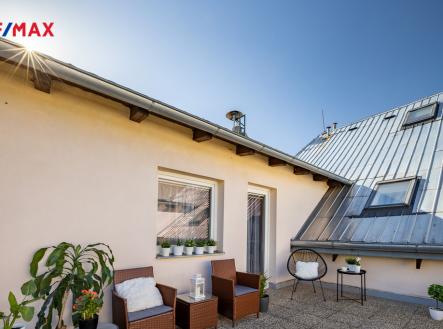 V centru Unhoště exkluzivně nabízíme k prodeji světlý, útulný podkrovní byt 2+kk s menší místností (s vlastním oknem) a prostornou terasou. Podlahová plocha bytu činí cca 61 m² a k tomu terasa o velikosti 41 m², která skýtá příjemný výhled na klidnou jižní část města plnou zeleně. Parkování je zajištěno v uzavřeném společném dvoře. Dispozici bytu tvoří obývací pokoj s kuchyňským a jídelním koutem, ložnice, koupelna s vanou a WC, vstupní chodba a samostatná místnost, kterou lze využít například jako šatnu, pracovnu nebo pokoj pro hosty. Díky střešním oknům a jihovýchodní orientaci je byt světlý s příjemnou vzdušnou atmosférou. Z obývacího pokoje je přímý vstup na terasu, kde najdete dostatek prostoru pro posezení s přáteli, letní grilování, vybudování kontejnerové zahrady nebo kombinaci toho všeho. Kuchyňská linka je vybavena vestavěnou myčkou, elektrickou troubou a sklokeramickou deskou. V ložnici a chodbě jsou úložné prostory, v obývacím pokoji pak stylové posezení. Podlahy jsou z keramická dlažby. Vytápění a ohřev vody zajišťuje vlastní plynový kotel. Rozvody elektřiny v mědi a vody v plastu jsou nově vyměněny. Unhošť je menší město s kompletní občanskou vybaveností. V docházkové vzdálenosti se nachází školy, školky, lékařské služby, lékárna, pošta, obchody, supermarkety, restaurace i sportoviště. Autobusové nádraží je vzdálené zhruba 70 metrů od domu a umožňuje rychlé spojení na metro Zličín, kam se dostanete za cca 15 minut. Stejná dojezdová doba platí i pro Letiště Václava Havla. Nemovitost je ideální pro jednotlivce, pár nebo menší rodinu, která hledá pohodlné a klidné bydlení s výbornou dostupností do Prahy. Skvěle poslouží také jako investiční příležitost pro následný pronájem. Byt je připraven k okamžitému nastěhování a jeho koupi je možné hradit hypotéčním úvěrem, s jehož zajištěním vám můžou pomoci naši zkušení hypotéční speciálisté. V případě zájmu o více informací mě neváhejte kontaktovat. Těším se na viděnou na prohlídce.
