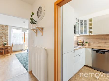 Dvoupodlažní řadový dům 3+1 z roku 2006, který prošel v roce 2022 rekonstrukcí (kuchyně a koupelna), se nachází na kraji Unhošti v klidné lokalitě zhruba 1 km od centra. K domu náleží pozemek o velikosti 239 m2, na kterém je umístěný zahradní domek. Vymezen je jako bytová jednotka v RD (celkem 3 jednotky) a dle prohlášení vlastníka má plochu 74 m2, díky úpravám podkroví je však plocha po přeměření 87 m2. Další z úprav pak byl přesun kuchyně do samostatné místnosti s oknem, díky čemuž je obývák (28 m2) skutečně prostorný. Vstup na zahradu je možný jak z obýváku, tak zezadu přes vrátka. Nová kuchyně (10 m2) s oknem je umístěna u vstupu směrem do ulice, naproti je pak samostatné WC a nová koupelna s velkým sprchovým koutem. Toalety jsou v domě dvě, technická místnost je pak samostatná a pračka se sušičkou nikde nezaclání. Obě ložnice, které jsou v podkroví, jsou vybaveny vestavěnými skříněmi a po ruce mají WC. Vytápění je řešeno plynovým kotlem se spotřebou kolem 7 MWh ročně. Před domem je stání pro jedno auto (lze upravit pro dvě), přičemž kolem domu je provoz zcela minimální - leží mimo hlavní silnice. Pokud vás o domě zajímá více informací, rád vám poskytnu odkaz na web nabídky s plánky, větším počtem fotek a podobně.
