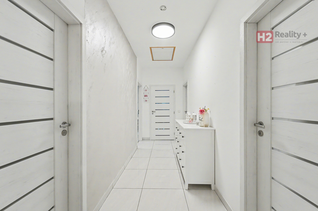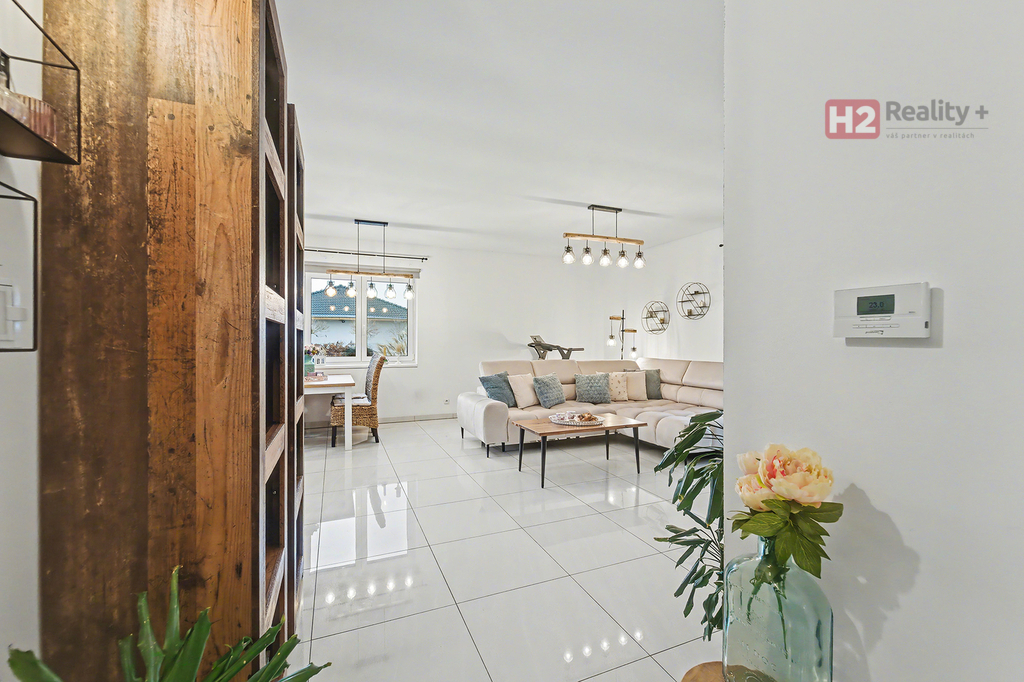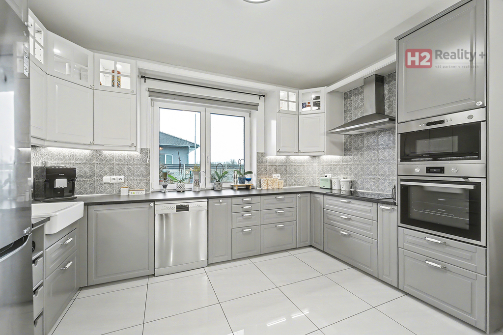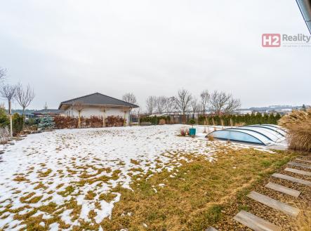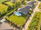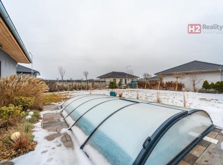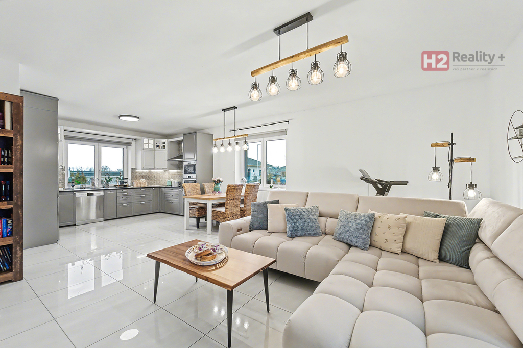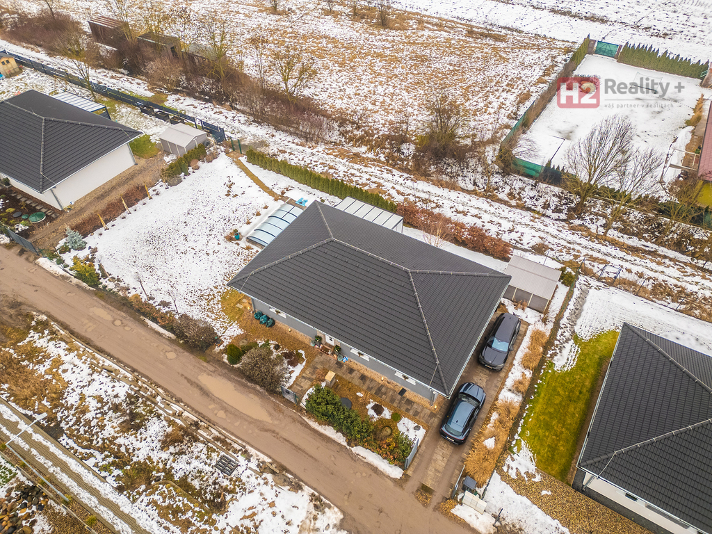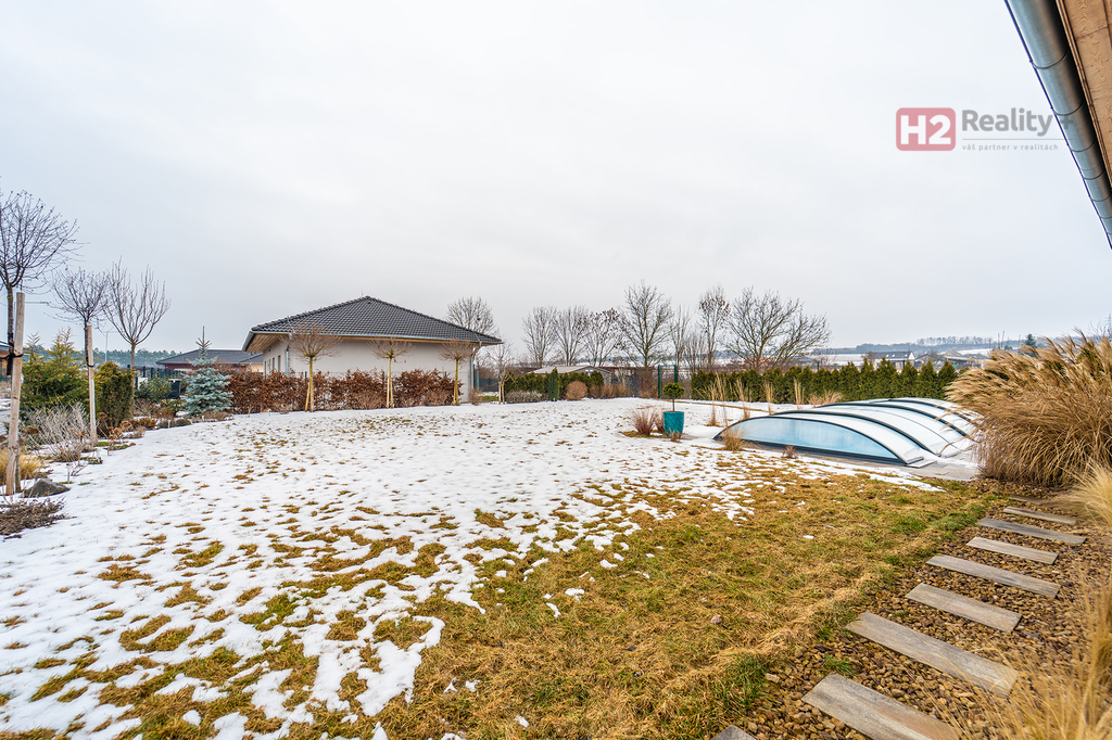 Nabízíme k prodeji samostatně stojící rodinný dům v obci Úpohlavy, okres Litoměřice, situován je na okraji obce v klidné části se skvělou návazností na dálnici D8. Pozemek oplocený, již osazený vzrostlými dřevinami, vstupní brána pro vjezd na pozemek elektricky ovládaná, parkování dvou aut komfortně přímo na pozemku. Pozemek rovinatý s dostatkem světla. Dispozice domu 4+kk + technická místnost + krytý venkovní prostor k sezení, podlahová plocha 125 m2 na pozemku o výměře 765 m2, pozemek zatravněný, je k dispozici krytý bazén se slanou vodou (filtrační zařízení uloženo v zemi) a samostatně stojící domek na uskladnění zahradní techniky a nářadí. Stavební materiál cihla a tvárnice, kolaudace rok 2021 - prodává první majitel. V celém domě použity velmi kvalitní materiály, pečlivě vybíráno k maximálnímu uživatelskému pohodlí. Centrem celého domu je velký a prosvětlený obývací pokoj (31 m2) spolu s prostorem pro kuchyň (12 m2) , z ob. pokoje snadný vstup na zahradu francouzským oknem, velkorysé řešení dispozice této části domu - umožňuje umístit sedací soupravu i jídelní část, kuchyň kompletně IKEA, navržena a vyrobena dle náročných požadavků klienta, velké množství odkládacích ploch, včetně spíže, veškeré spotřebiče ve vysoké kvalitě, díky oknu i skvělá světlost kuchyně, obývací pokoj a kuchyň osazeny dlažbou (velkoformátová SIKO), zbytek místností disponuje kvalitní plovoucí podlahou, Další tři místnosti mají samostatné vstupy, využívány jako ložnice a dětský pokoj (rozmístění již bude na nových uživatelích), možnost využívat plnohodnotnou koupelnu s toaletou, u vchodu ještě menší toaleta s umyvadlem, velkým benefitem je praktická šatna (4 m2). V celém domě podlahové topení, bezpečnostní systém AJAX, možnost napojit na bezpečnostní službu, vytápění a ohřev vody přes tepelné čerpadlo, IS - voda - připojení obecní vodovod, u domu čistička odpadních vod, nádrž na užitkovou vodu 10 kubíků, stejně velká nádrž 10 kubíků na dešťovou vodu, ve které je napojeno čerpadlo na automatický zavlažovací systém na zahradu a trávník, plyn v domě není, internet od firmy celanet. Obec Úpohlavy se nachází v okrese Litoměřice, leží v srdci Českého středohoří, v blízkosti zřícenina hradu Hazmburk, zřícenina hradu Košťálov, Lucký mlýn, lokalita nabízí skvělé možnosti pro milovníky turistiky a sportu, v obci je vlaková zastávka (spojení směr Litoměřice, Louny, Česká Lípa) a také zastávka autobusu (spojení směr Lovosice), největší výhodou je však blízkost dálnice D8 (směr Praha nebo Drážďany). S financováním nemovitosti Vám velmi rád pomohu, určitě doporučuji osobní prohlídku domu!