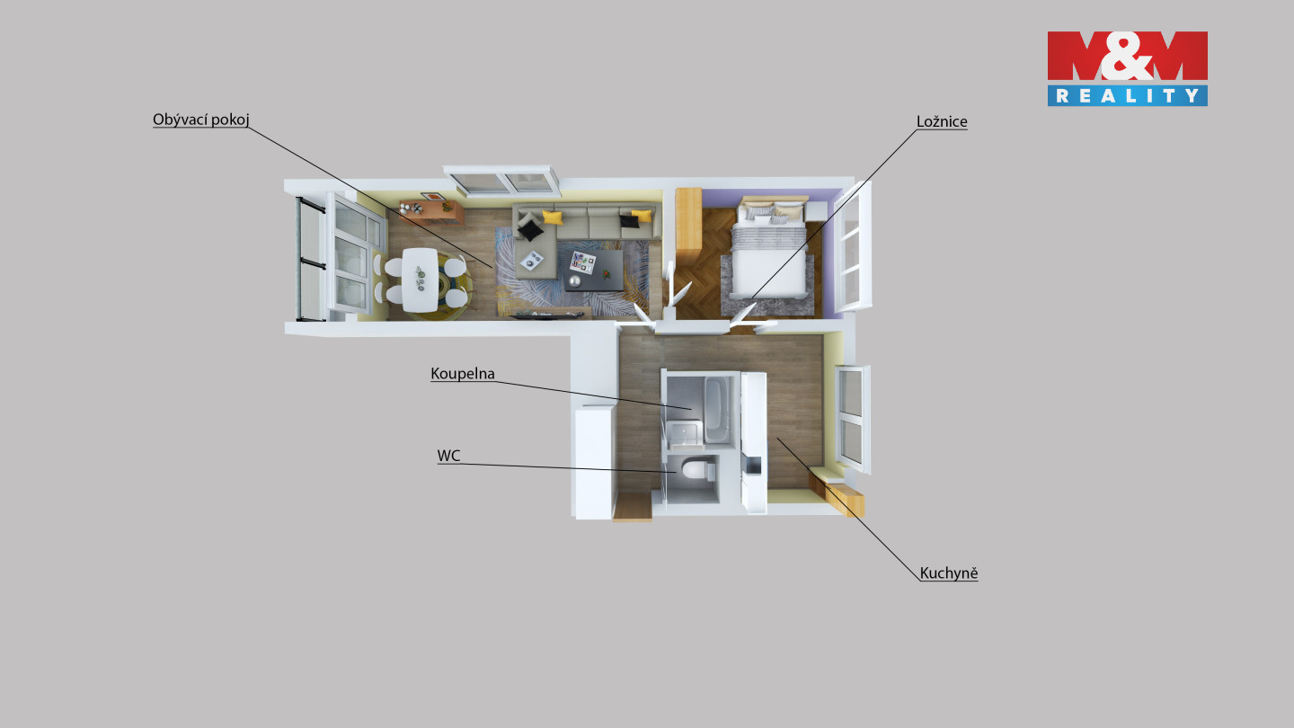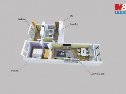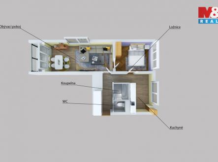 Pronájem bytu 2+1 s balkónem v Ústí n. L., ul. Bratří Čapků