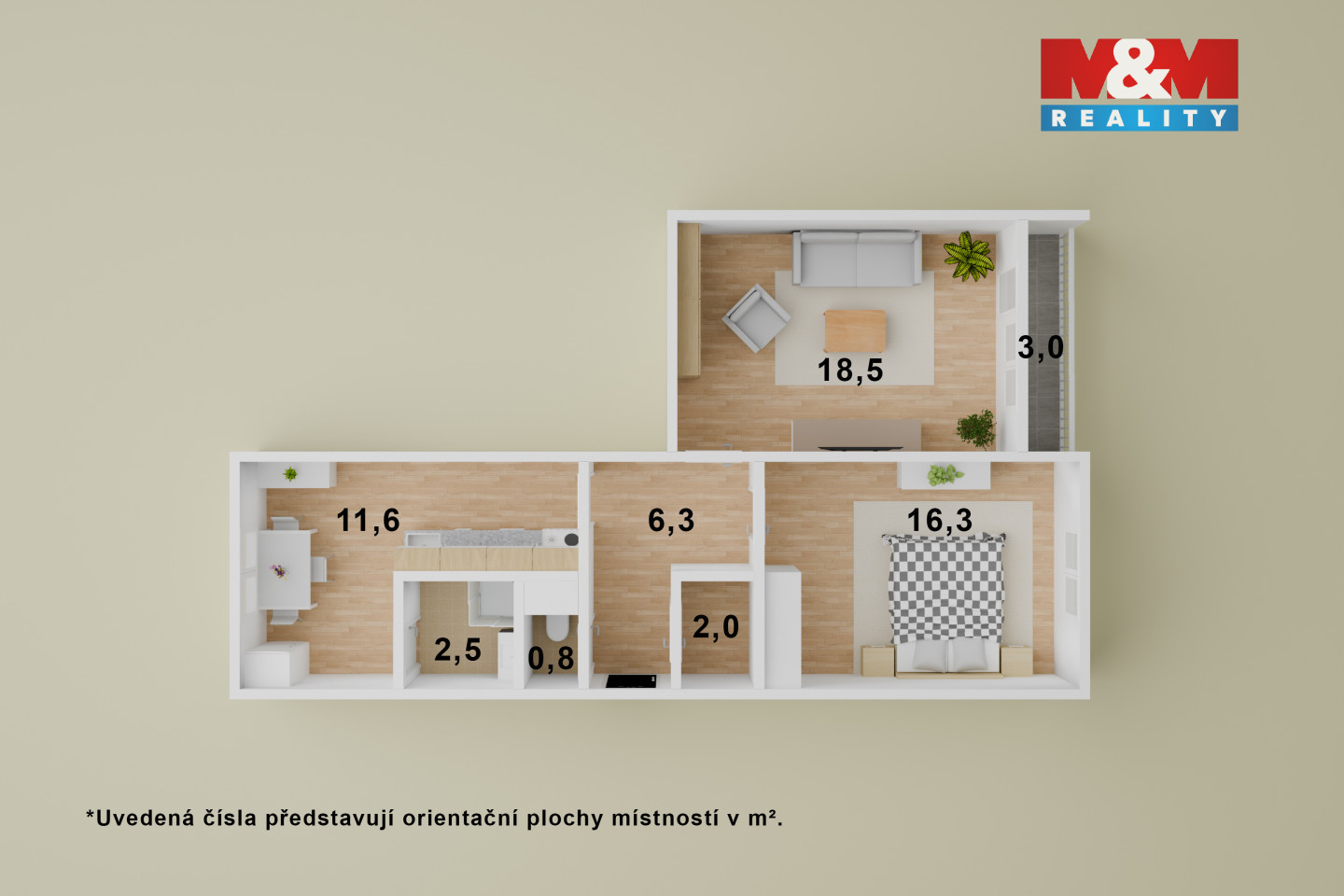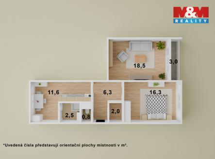 Pronájem bytu 2+1 v Ústí nad Labem, ul. Rabasova
