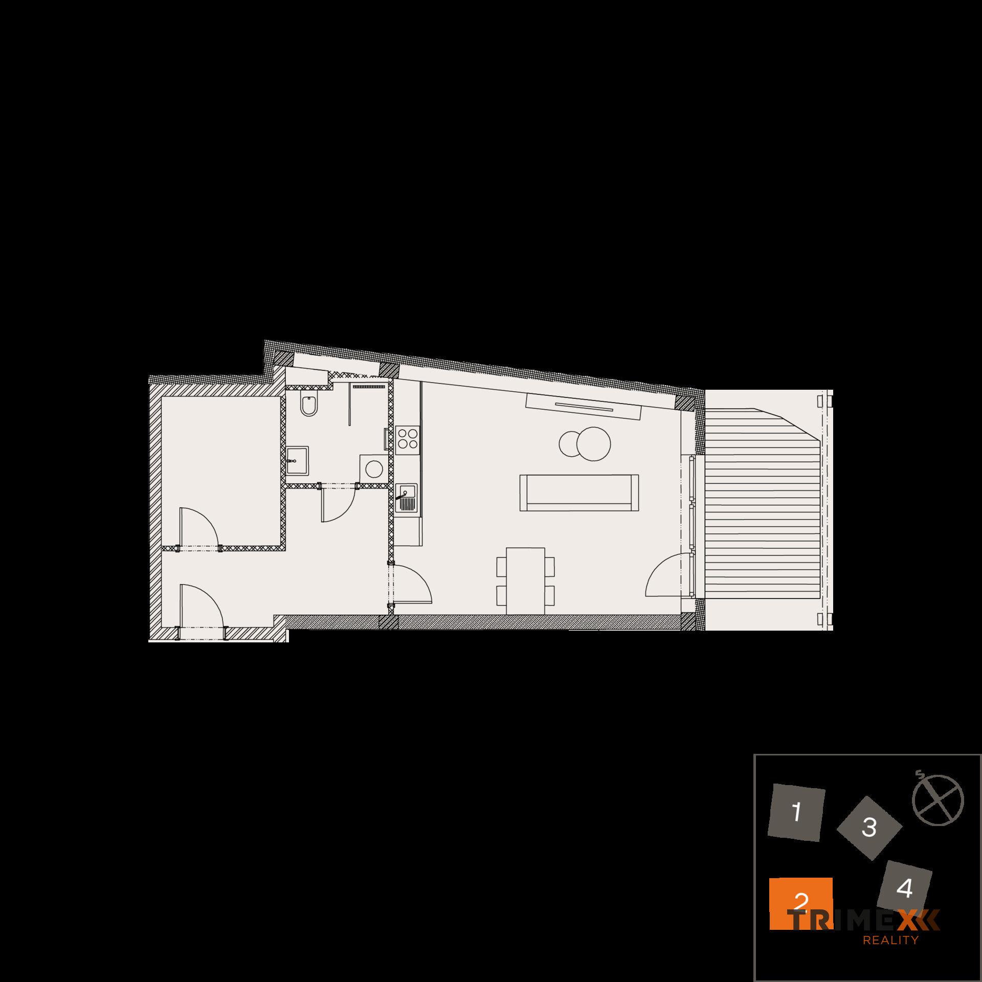Rezidenci Štěpánov, Valašské Meziříčí, byt. jedn. 1+kk, 46,93 m2, terasa 9,12 m2, zahrada 132,8 m2