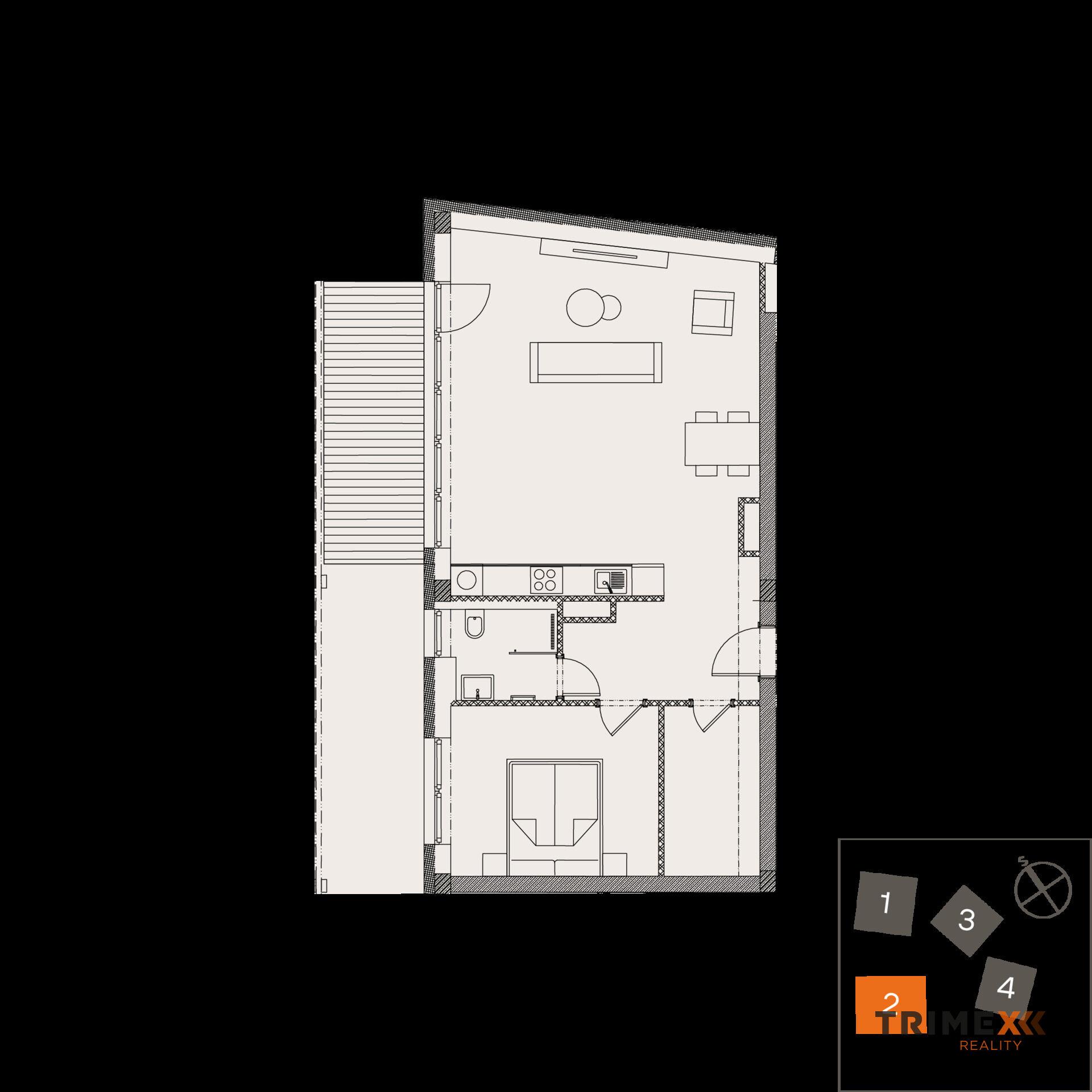 Rezidenci Štěpánov, Valašské Meziříčí, byt. jedn. 2+kk, 65,83 m2, terasa 9,95 m2, zahrada 88,49 m2