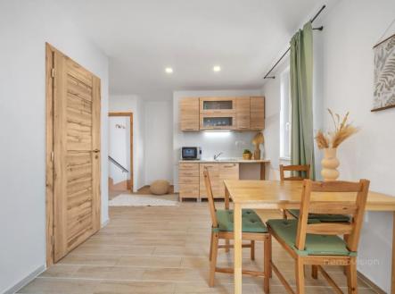 Valtice - jedna z nejžádanějších vinařských lokalit jižní Moravy. Právě zde nabízíme k prodeji rodinný dům, který díky svému dispozičnímu řešení nabízí široké možnosti využití – zejména pro vícegenerační bydlení, kombinaci bydlení a podnikání nebo částečný pronájem. Dům je rozdělen na dvě samostatné jednotky (4 apartmány), které lze využívat odděleně i jako jeden celek. Dispozice a uspořádání Apartmány 1 a 2: - vhodné jako hlavní obytná část domu - sdílená plně vybavená kuchyň - každý apartmán má vlastní koupelnu (sprchový kout, WC, umyvadlo) - možnost oddělení uzamykatelnými dveřmi Apartmány 3 a 4: - samostatný vstup a chodba - každý apartmán má vlastní kuchyňku a sociální zázemí - vhodné pro další členy rodiny, hosty nebo podnikání Nemovitost je v současnosti využívána ke krátkodobému pronájmu a je možné navázat na stávající provoz. Lokalita Valtice jsou součástí Lednicko-valtického areálu a patří mezi nejvyhledávanější lokality jižní Moravy. Nabízí kompletní občanskou vybavenost, výbornou dostupnost a široké možnosti volnočasových aktivit. Ráda vás provedu touto krásnou nemovitostí. Pro více informací nebo sjednání prohlídky mě neváhejte kontaktovat.