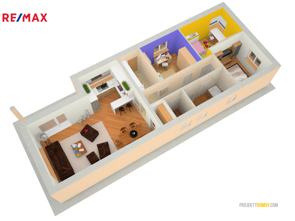 Zcela nový rodinný dům 4+kk, 102 m2, v obci Valtrovice. Nabízíme zcela nový rodinný dům, umístěný na pozemku o výměře 810 m2 v obci Valtrovice, který je navržen jako přízemní, nepodsklepený se sedlovou střechou. Dům v sobě kombinuje vzhled tradičních rodinných domů a prvky moderní architektury. Slunečný dům nabízí dostatek prostoru i slunečního svitu. Díky velkým oknům a snadnému přístupu na zahradu působí dům vzdušně a prosvětleně i v ponurém počasí. Dobrá zpráva pro majitele úzkých pozemků – projekt domu SLIM s moderní architekturou, zohledňující omezený pozemkový prostor. Všechny užitkové místnosti jsou na jedné straně, což umožňuje usadit dům z jedné strany co nejblíže sousednímu pozemku. Tímto lze dosáhnout co největší užitkovosti i z úzkého pozemku. Tvar, velikost a umístění oken domu si můžete upravit dle vlastních potřeb. Také lze jednoduše zvětšit koupelnu na úkor technické místnosti. Projekt domu slim představuje novinku. Dispozice 4+kk s užitnou plochou 102 m2 je ideální pro 4člennou rodinu. Propracovaná studie rodinného domu zaručuje vysokou kvalitu provedení spolu s ekonomicky přijatelným řešením. Dům nabízí prostorný obývací pokoj s kuchyňským koutem a spíží; ložnici, 2 dětské pokoje, prostornou koupelnu s vanou a sprchovým koutem, komfortní zádveří a technickou místnost se samostatným WC. Velké francouzské okno v obývacím pokoji zajistí dostatečné množství světla a pohodlný vstup na zahradu. Užitná plocha RD: 102 m2 Zastavěná plocha 129 m2. Vytápění zajištuje tepelné čerpadlo a je řešeno jako podlahové v celém domě díky čemuž má dům velmi nízké náklady na provoz. Možnost využití krbu. Uvedené ceny obsahují: tepelné čerpadlo vzduch - voda vodovodní podlahové vytápění v celém domě, případně elektrické podlahové vytápění zásobník na ohřev TUV 190 litrů v rámci tepelného čerpadla, případně bojler s tepelným čerpadlem komín hromosvod zateplení domu - polystyrenem 150 mm vysoký standard podlah i obkladu a dlažby základovou desku ve standardním provedení statické posouzení základové desky projekt, stavební povolení ... a mnoho dalšího Uvedené ceny neobsahují: napojení domu na inž. sítě – bude naceněno až po umístění domu na pozemku kuchyňskou linku a nábytek spotřebiče zpevněné plochy, nájezdy, oplocení finální úpravu terénu krbová kamna (krb. vložku) Možnost klientských změn nebo výběru jiného typu domu. Stupeň dokončení "na klíč" je šitý na míru klientům, kteří chtějí využít veškerého komfortu kompletní dodávky rodinného domu. Dům dokončený na klíč je budoucím uživatelům předán ve stavu umožňujícím okamžité nastěhování. Obec Valtrovice se nachází nedaleko česko-rakouských hranic asi 17 km jihovýchodně od města Znojma. Polohou 195 m n. m je částí Jižní Moravy, kde jsou velmi dobré podmínky pro pěstování zeleniny a vinné révy. Jižní stranou obce protéká řeka Dyje, která svým pěkným okolím meandry je vhodná ke koupání a rybaření. Pro více informací volejte makléře nabídky.