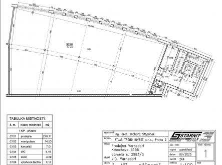 Reprezentativní komerční prostory k pronájmu – Varnsdorf, Kmochova 3156 Nabízíme k pronájmu víceúčelové komerční prostory s celkovou čistou užitnou plochou cca 450 m², které se nachází na dostupné adrese Kmochova 3156, Varnsdorf. Aktuálně je objekt využíván jako prodejna (DM), ale je zcela vhodný pro nového nájemce a jeho vlastní podnikatelský záměr – přestavby a dispoziční úpravy jsou možné. Prostory jsou ideální pro obchod, sklad + výdejnu, kancelářské zázemí, lehkou výrobu, služby či kombinaci více funkcí. Dispozice: 1. NP – prodejní prostor / obchodní část (303,07 m²) • Prostorná prodejní plocha 270,11 m² • Samostatná místnost pro manipulaci / příjem zboží • Kancelář, WC a úklidová místnost • Výtahová šachta s plně funkčním výtahem. (ideální pro manipulaci se zbožím) + schodiště 2. NP – skladové a provozní zázemí (146,57 m²) • Velký hlavní sklad 81 m² • Další sklad potravin / drobného zboží • Denní místnost, šatna (prostory vhodné pro zázemí zaměstnanců) • Chodba, schodiště, výtahová šachta, WC Významné výhody: • Strategická poloha v samotném centru města • Budova se nachází hned vedle Penny marketu a trafiky – vysoká frekvence zákazníků po celý den • Okolí tvoří hustá zástavba panelových domů, která zajišťuje stabilní základnu místních obyvatel • Flexibilní dispozice prostoru – možnost úprav podle potřeb nájemce • Velká užitná plocha a logické členění na obchod + zázemí • Výborná dostupnost pro zásobování – pohodlný přístup do zadní části budovy • Bezbariérový přístup pro zákazníky přímo z hlavní ulice • Objekt se nachází hned vedle parkoviště, což výrazně zvyšuje komfort zákazníků • Ideální pro provozovny, které potřebují prodejní prostor + sklad • Budova má moderní, čistou fasádu a díky dlouhému průčelí s výlohami je velmi dobře viditelná z hlavní ulice Podmínky pronájmu: • Cena: 85.000 Kč/měsíc • Zálohy na energie: 15.000 Kč/měsíc • Vratná kauce: 170.000 Kč • Rezervační záloha ve výši 50.000,- Kč bude po podpisu nájemní smlouvy zaúčtována jako provize RK. • K dispozici od 1.2.2026 Prostory je možné přizpůsobit novému provozu, a to jak po stránce dispozic, tak technického vybavení. Neváhejte nás kontaktovat. Rádi vám poskytneme více informací a domluvíme termín prohlídky podle vašich možností.