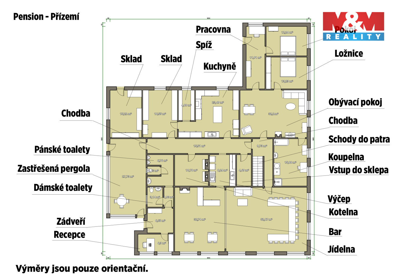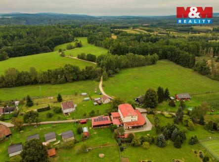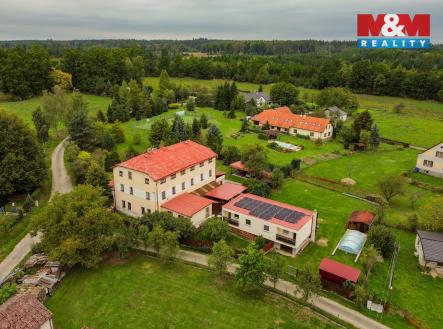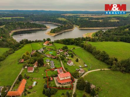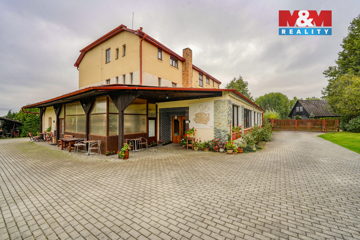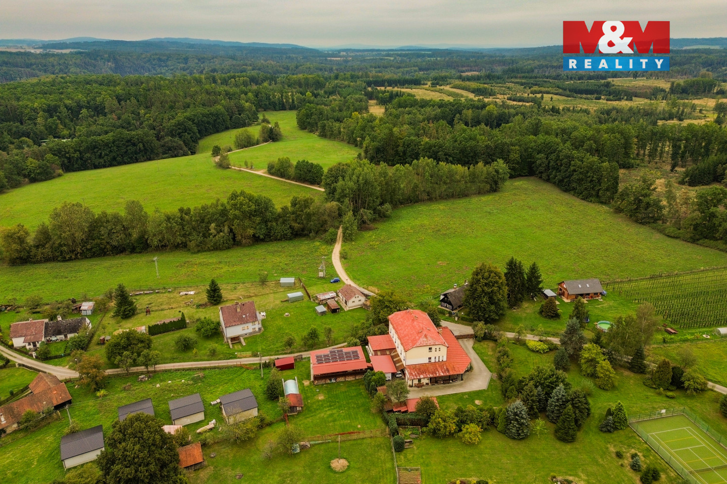 Nabízíme k prodeji jedinečný rodinný penzion(1058m2), který se nachází u Orlické přehrady v krásné jihočeské krajině uprostřed lesů, 600 m od řeky Otavy a 4 km od hradu Zvíkov, ve vesničce Štědronín. Zavedený penzion nabízí ideální příležitost pro investory a podnikatele. Skládá se ze dvou budov. V hlavní budově je restaurace s barem, výčep, kuchyně, sklad, kotelna a byt 3+kk, který je vytápěn samostatně tep. čerpadlem. V prvním patře najdete 5 apartmánů s vlastním sociálním zařízením. Ve druhém patře je 8 pokojů s WC a sprchami na chodbě.Ohřev vody řešen bojlerem. Vytápění centrální od dvou samost. kotlů na dřevo a pelety + elektrokotel. V samostatné budově jsou 2 apartmánové rezidence s vybavenou kuchyňkou, televizí, WC, sprchovým koutem, balkonem a terasou. Zdroj vody je samostatná studna a vrt. Celý objekt má ČOV. Velkou předností je nyní nově nainstalovaná FVE pro celý objekt. Na pozemku se dále nachází bazén,chatky,garáž Neváhejte a kontaktujte nás pro více informací či prohlídku